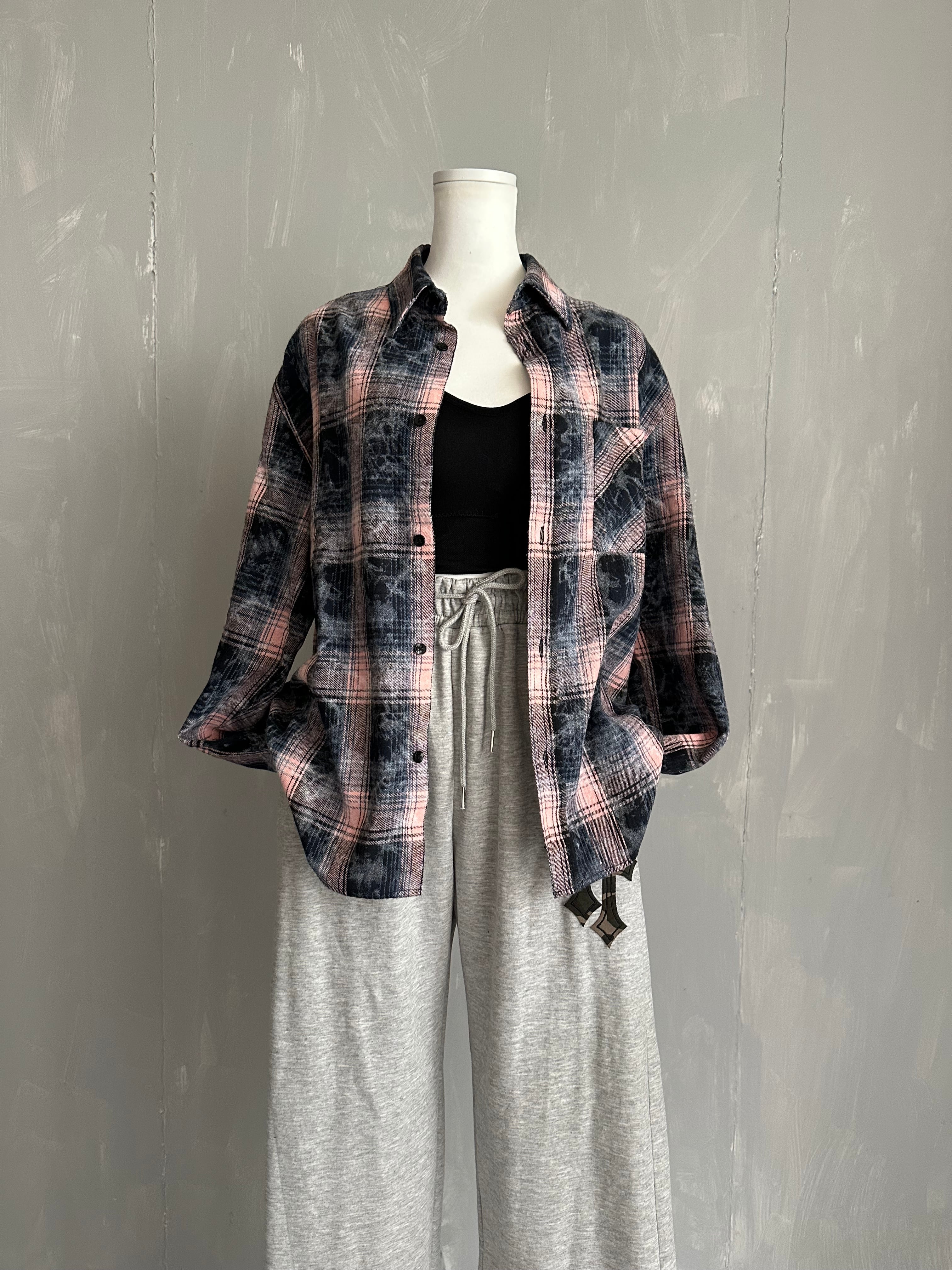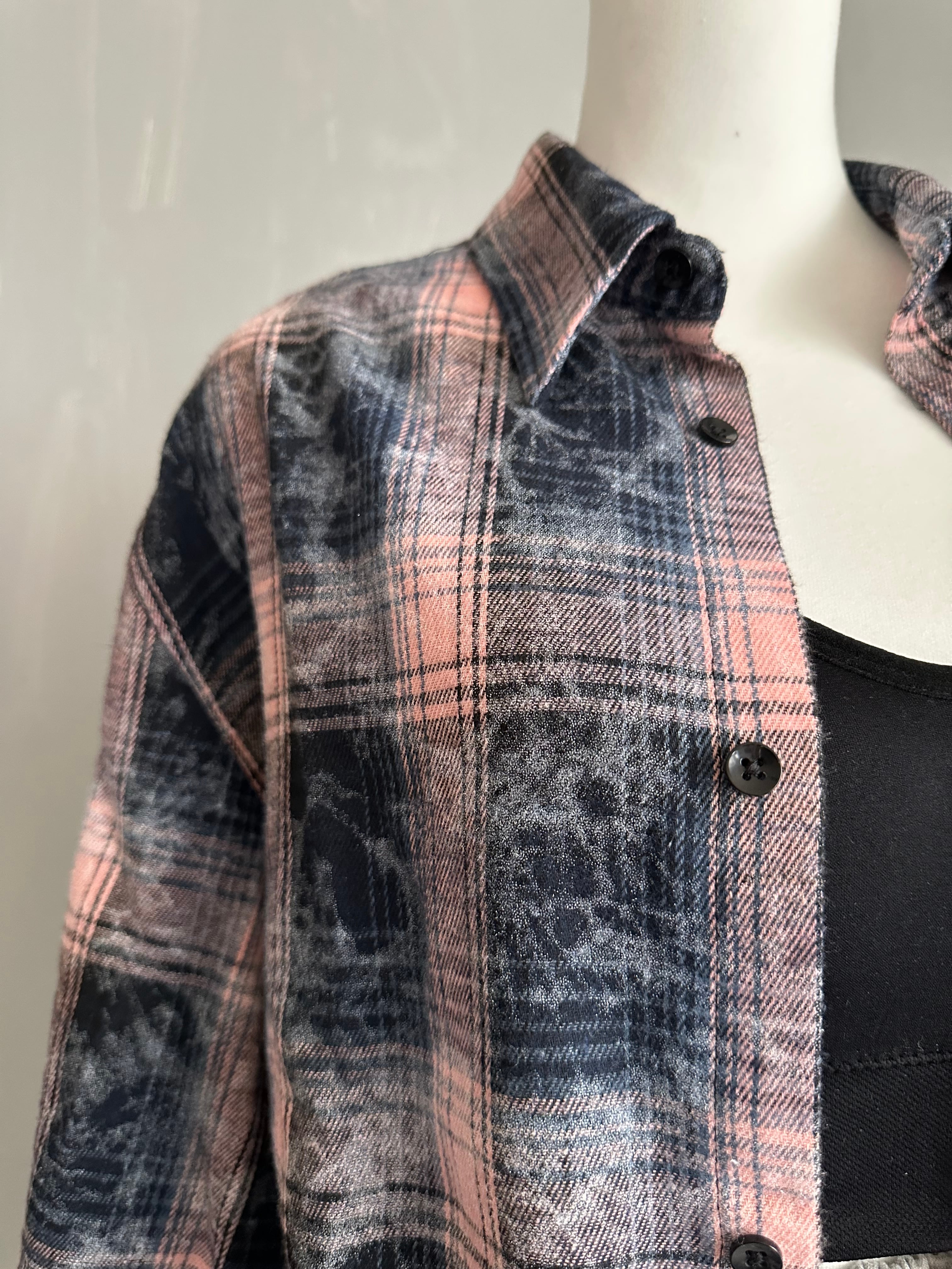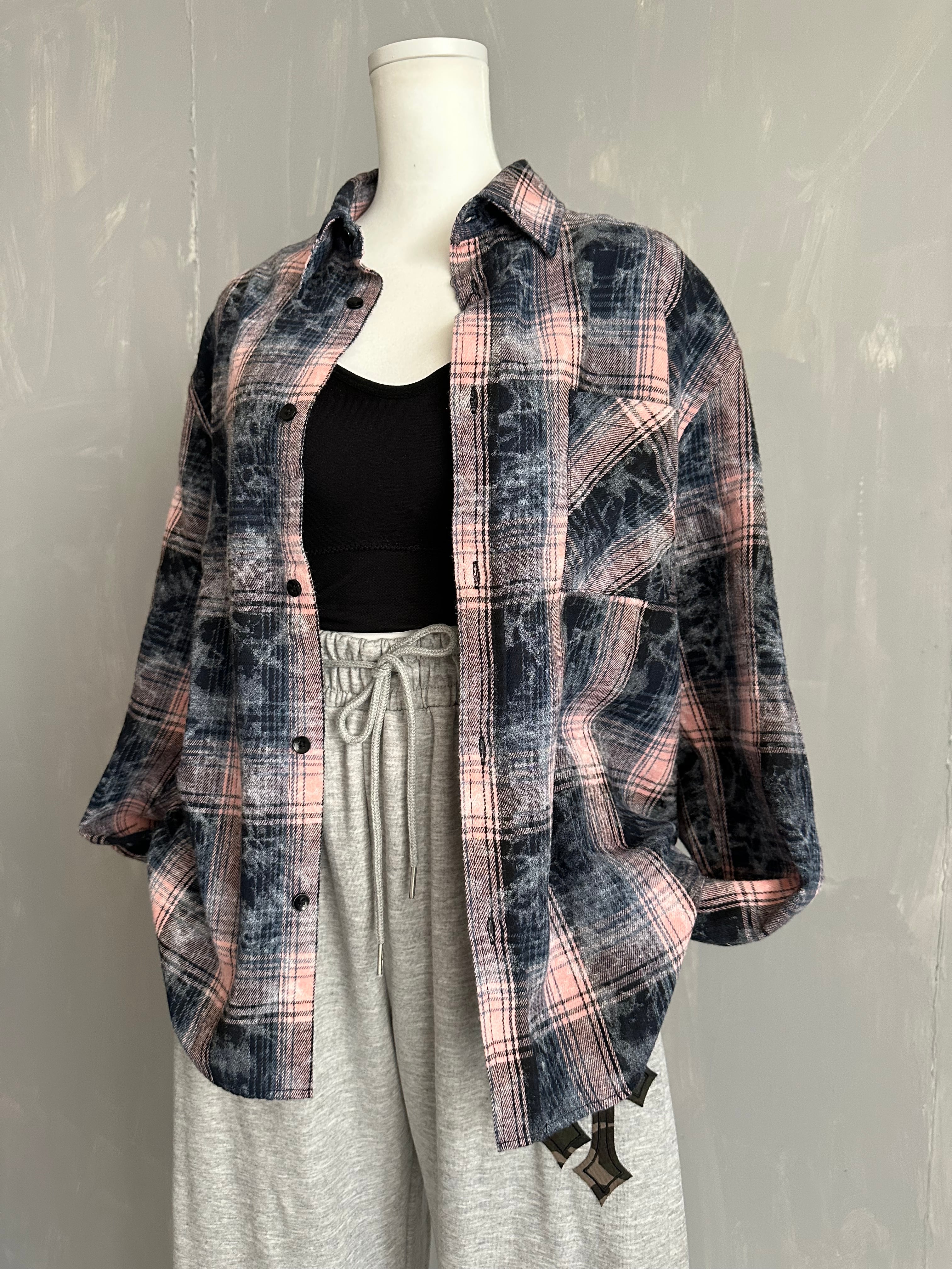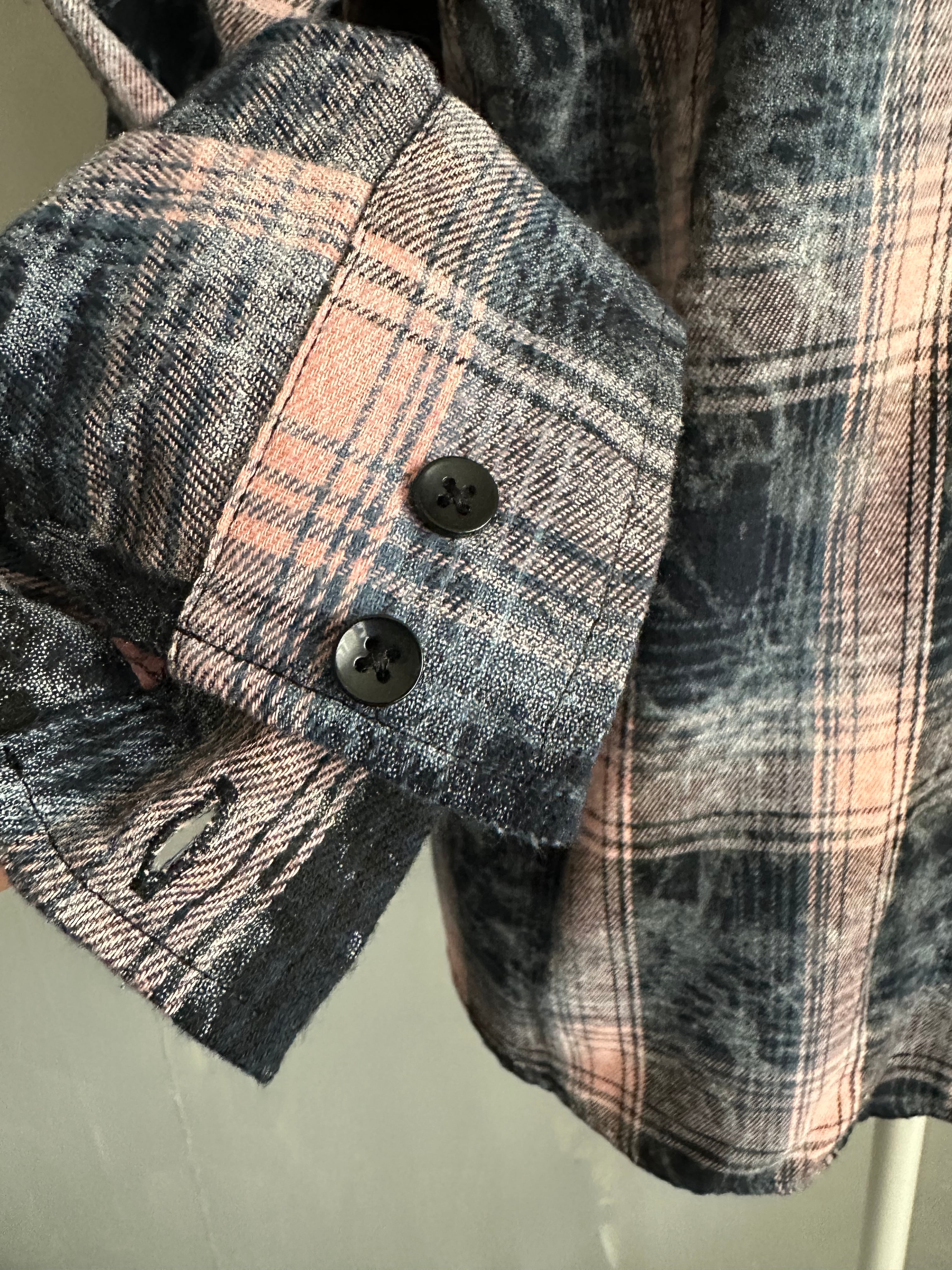 サイズM(ユニセックス) 着丈66 胸囲112 肩幅52 袖丈61 先染めチェック柄を使用し製品洗い加工 配色バランスが可愛く ビンテージ感を出したチェックシャツ カジュアル見えしながら、ボタン色も大人っぽく、高見えするコントラスト 男女兼用でご着用頂けます ポリエステル65% 綿35%