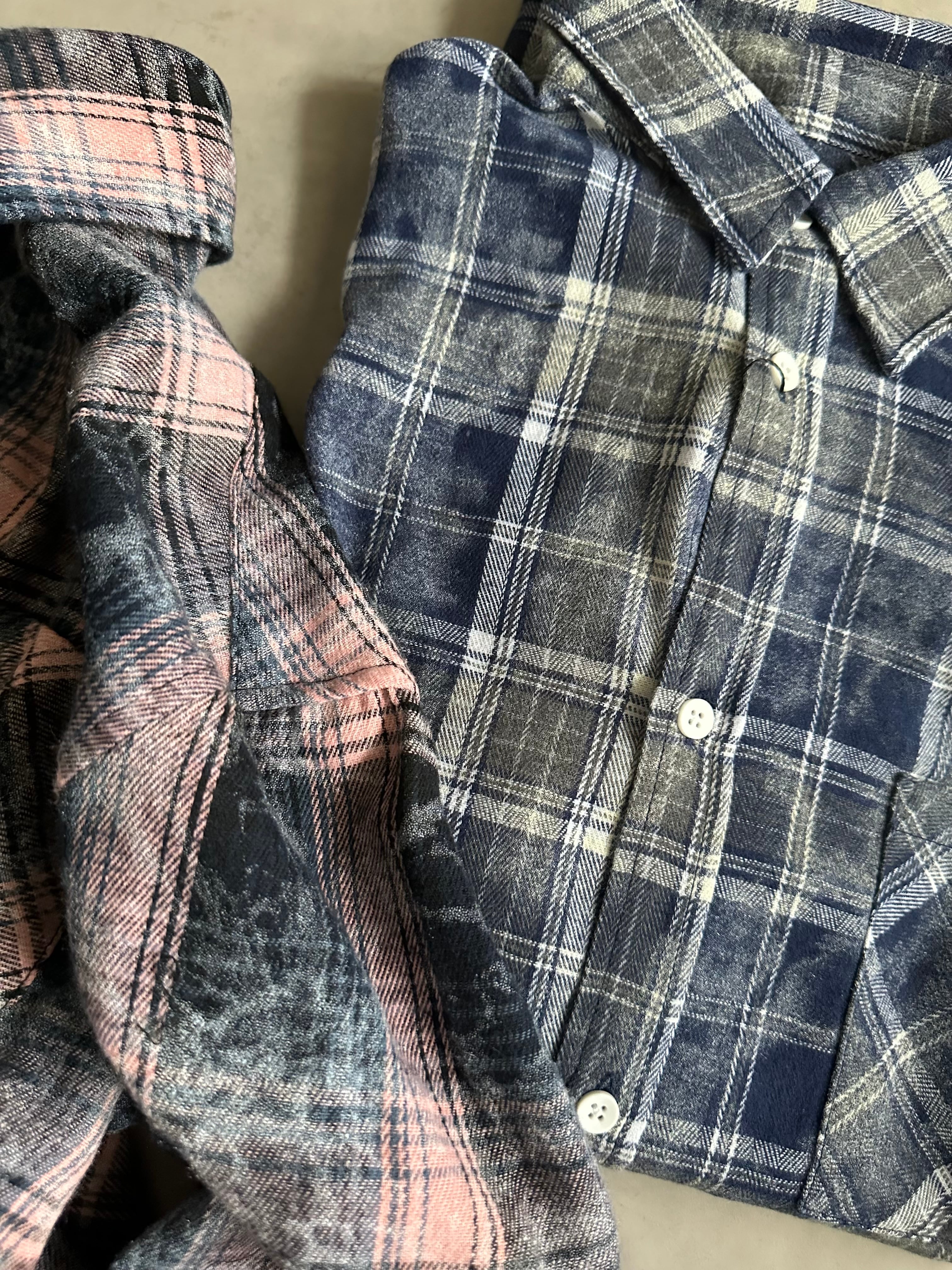 サイズM(ユニセックス) 着丈66 胸囲112 肩幅52 袖丈61 先染めチェック柄を使用し製品洗い加工 配色バランスが可愛く ビンテージ感を出したチェックシャツ カジュアル見えしながら、ボタン色も大人っぽく、高見えするコントラスト 男女兼用でご着用頂けます ポリエステル65% 綿35%