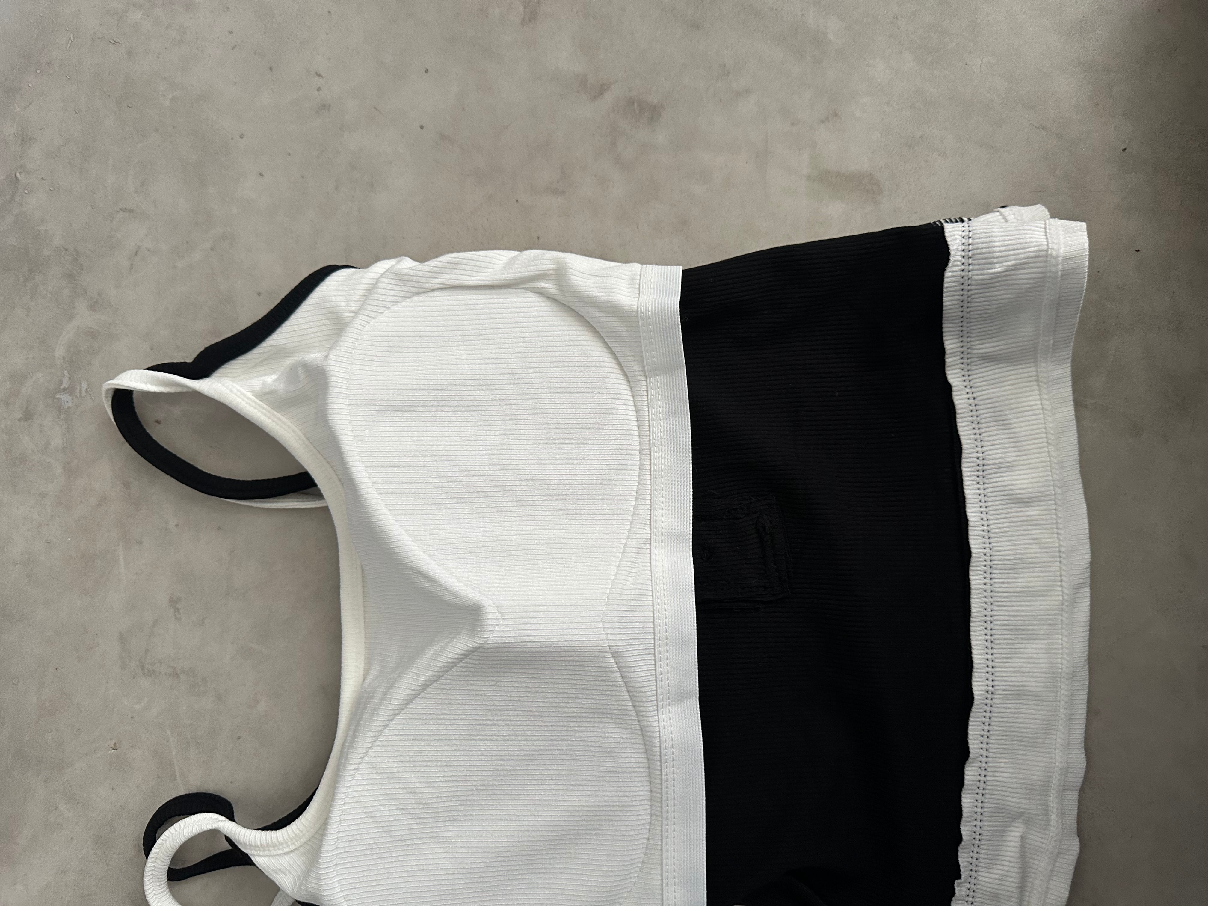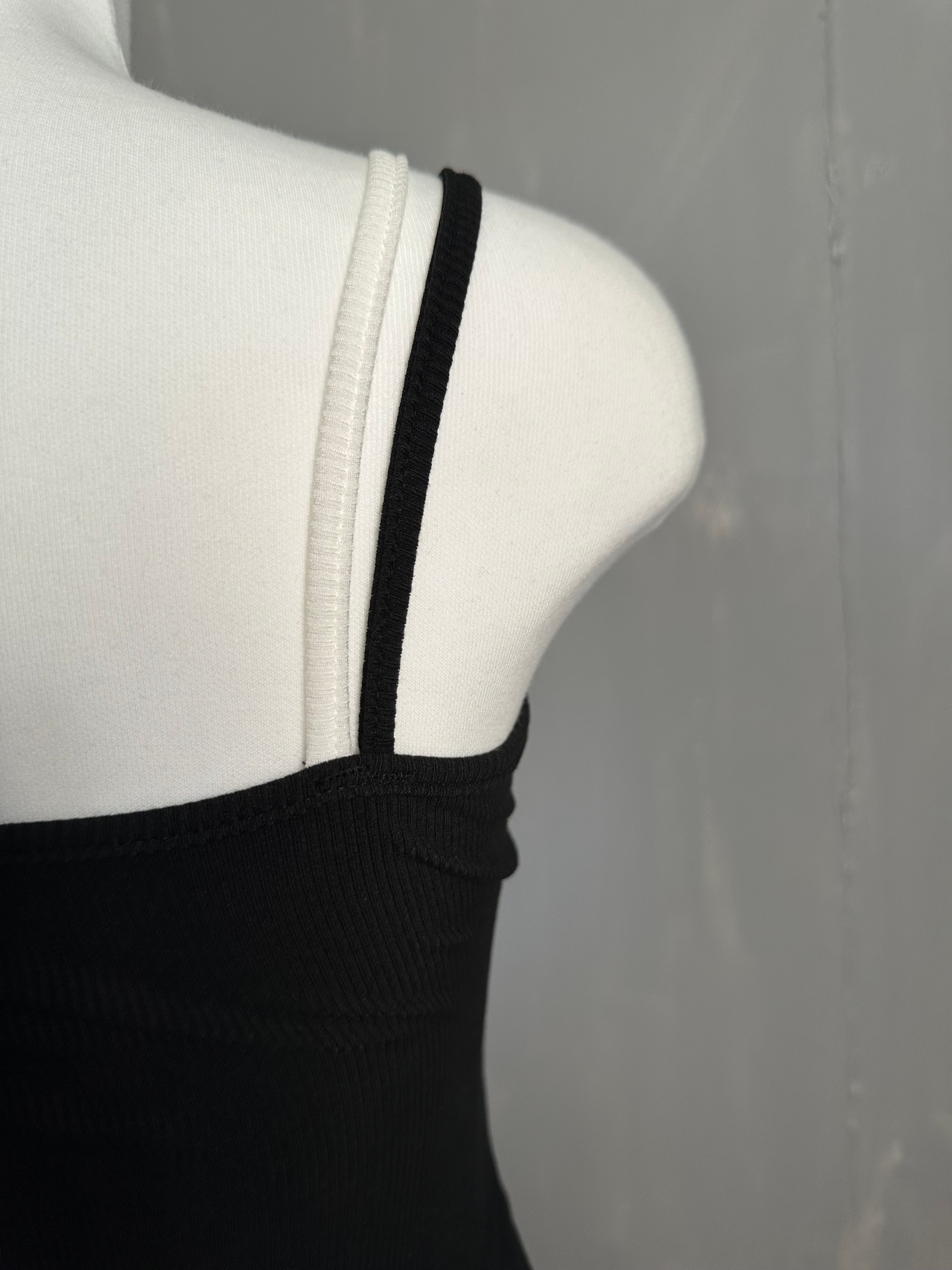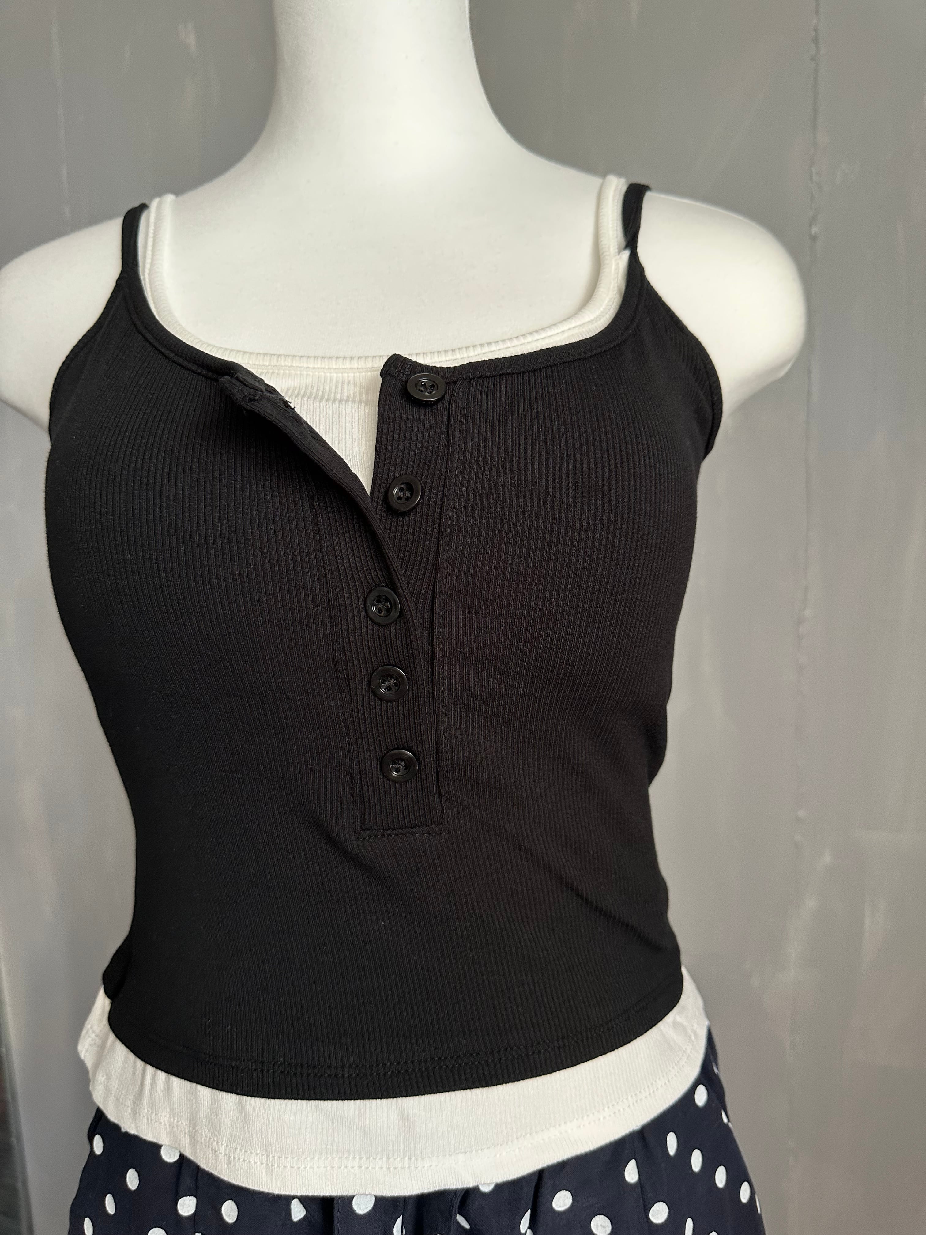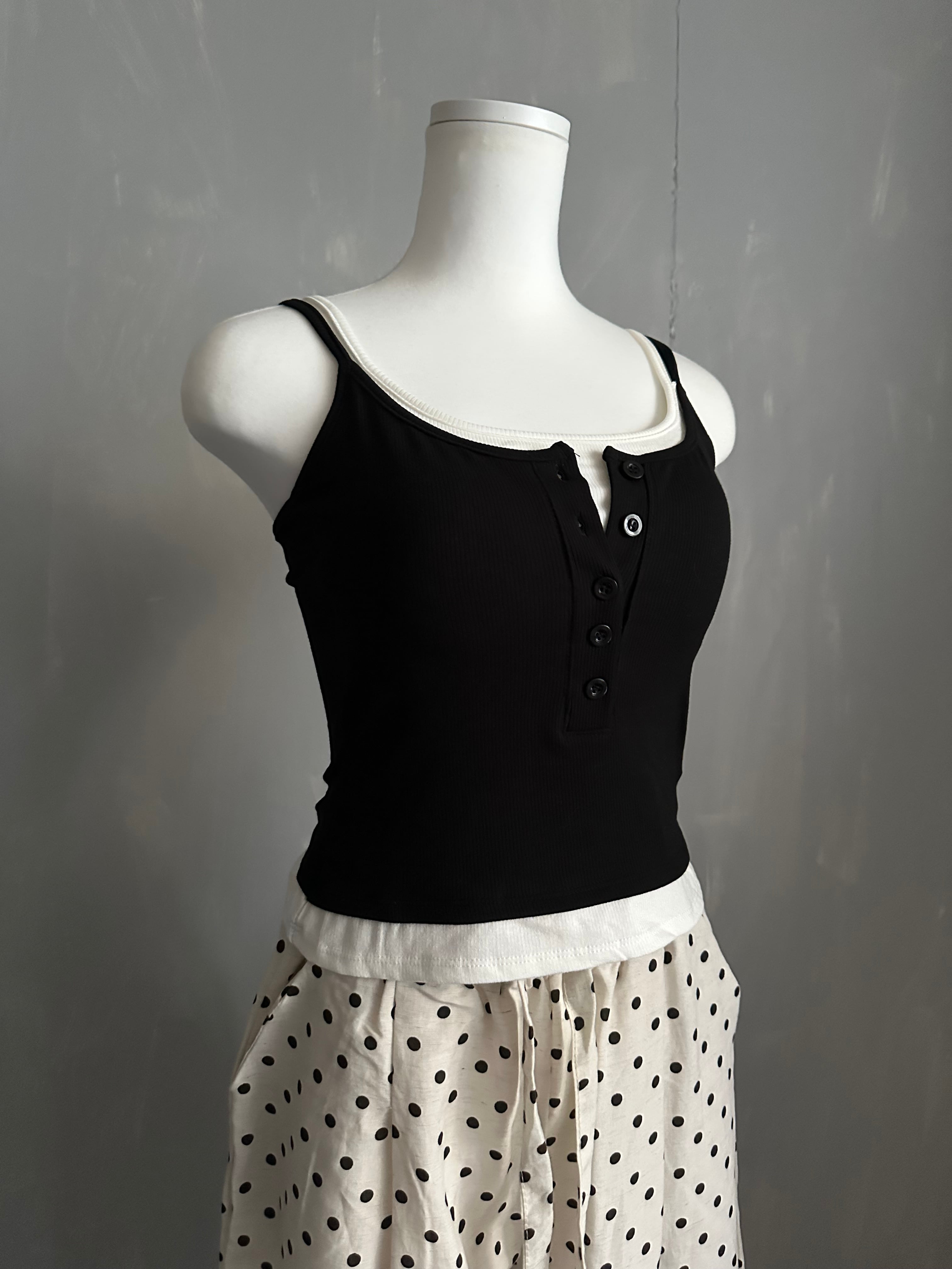 カップ付き配色レイヤードリブストレッチキャミソール/ブラック×ホワイト