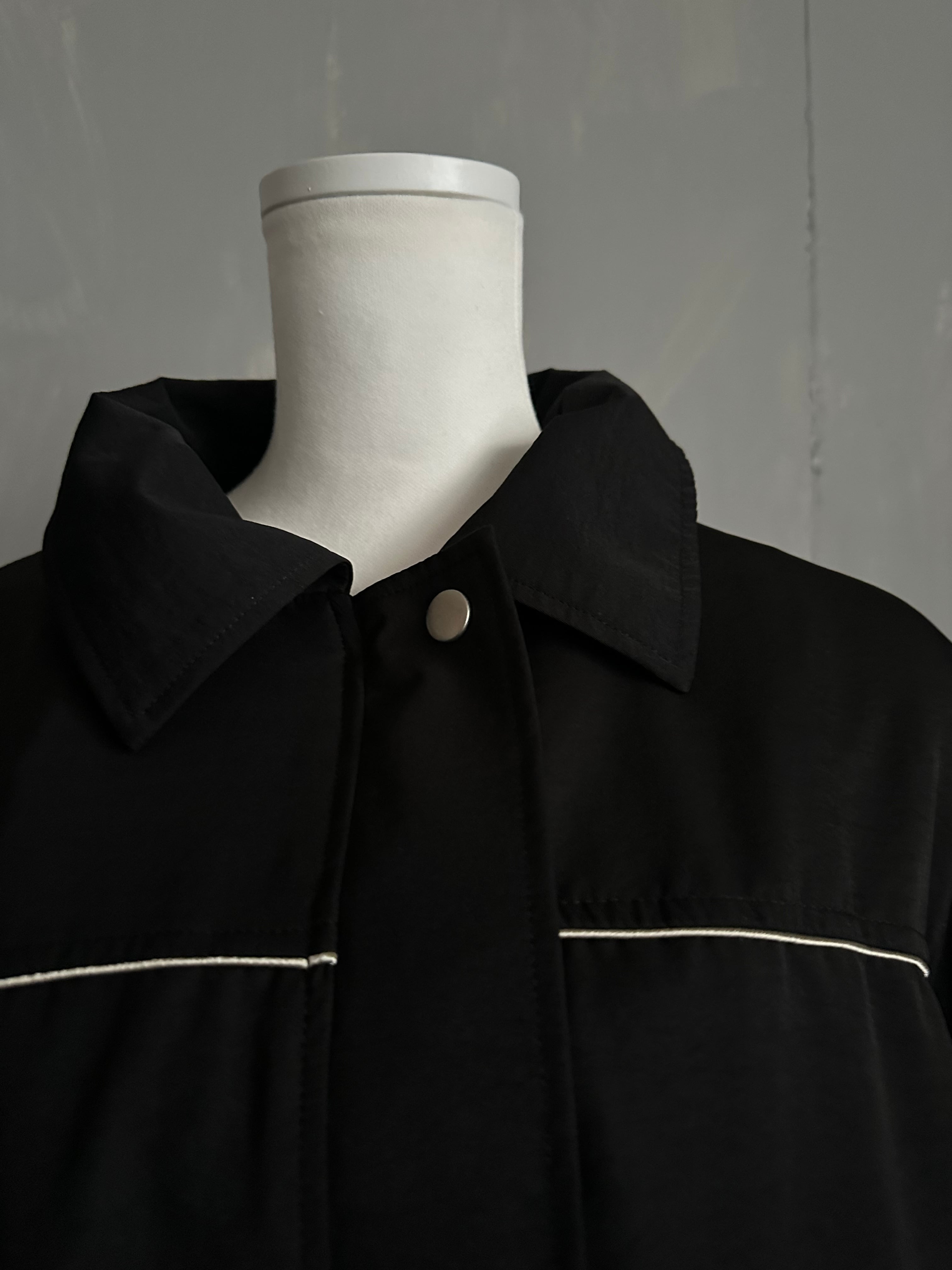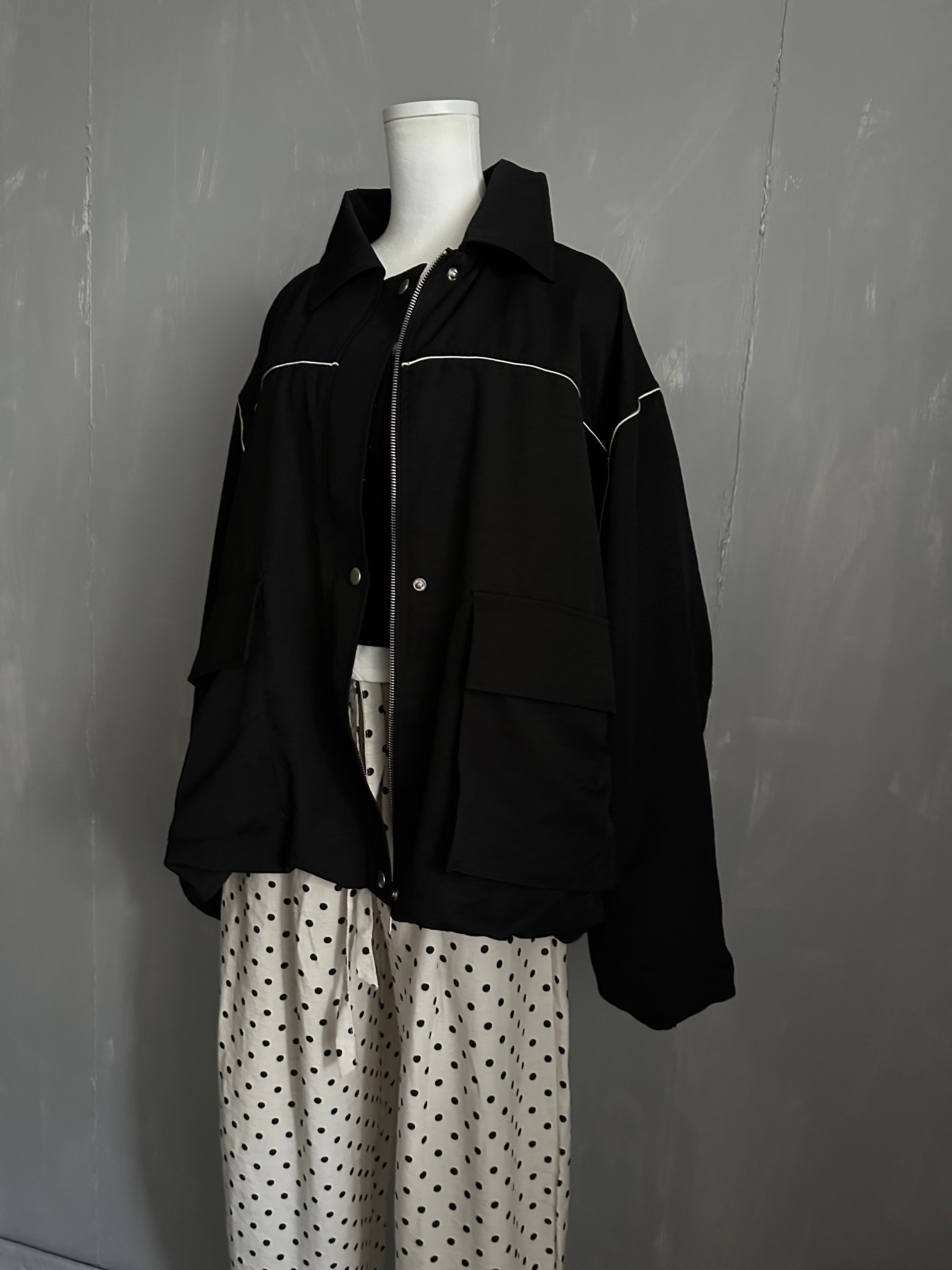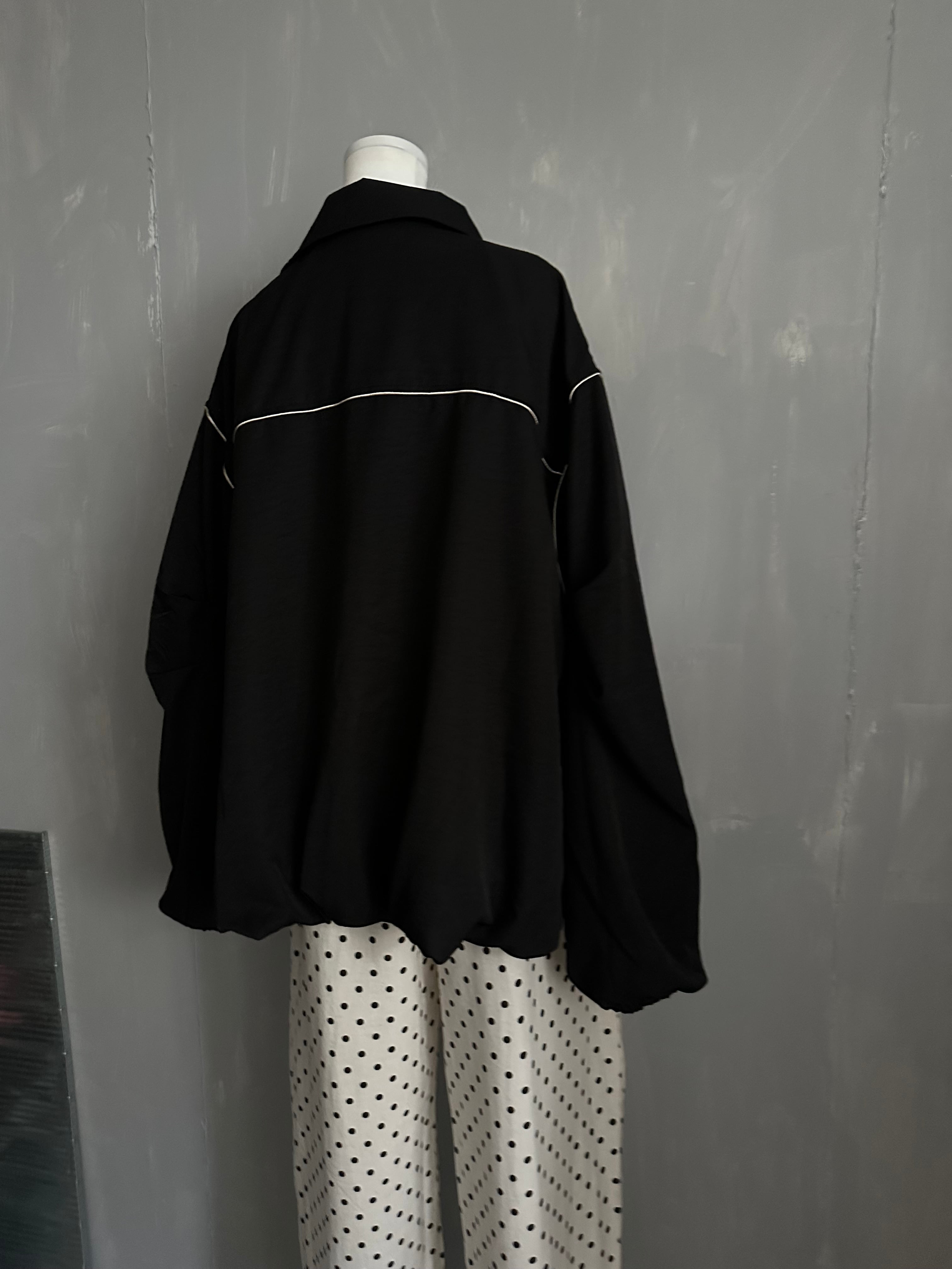 軽量パイピング合繊ツイルバルーンナイロンJK/ブラック