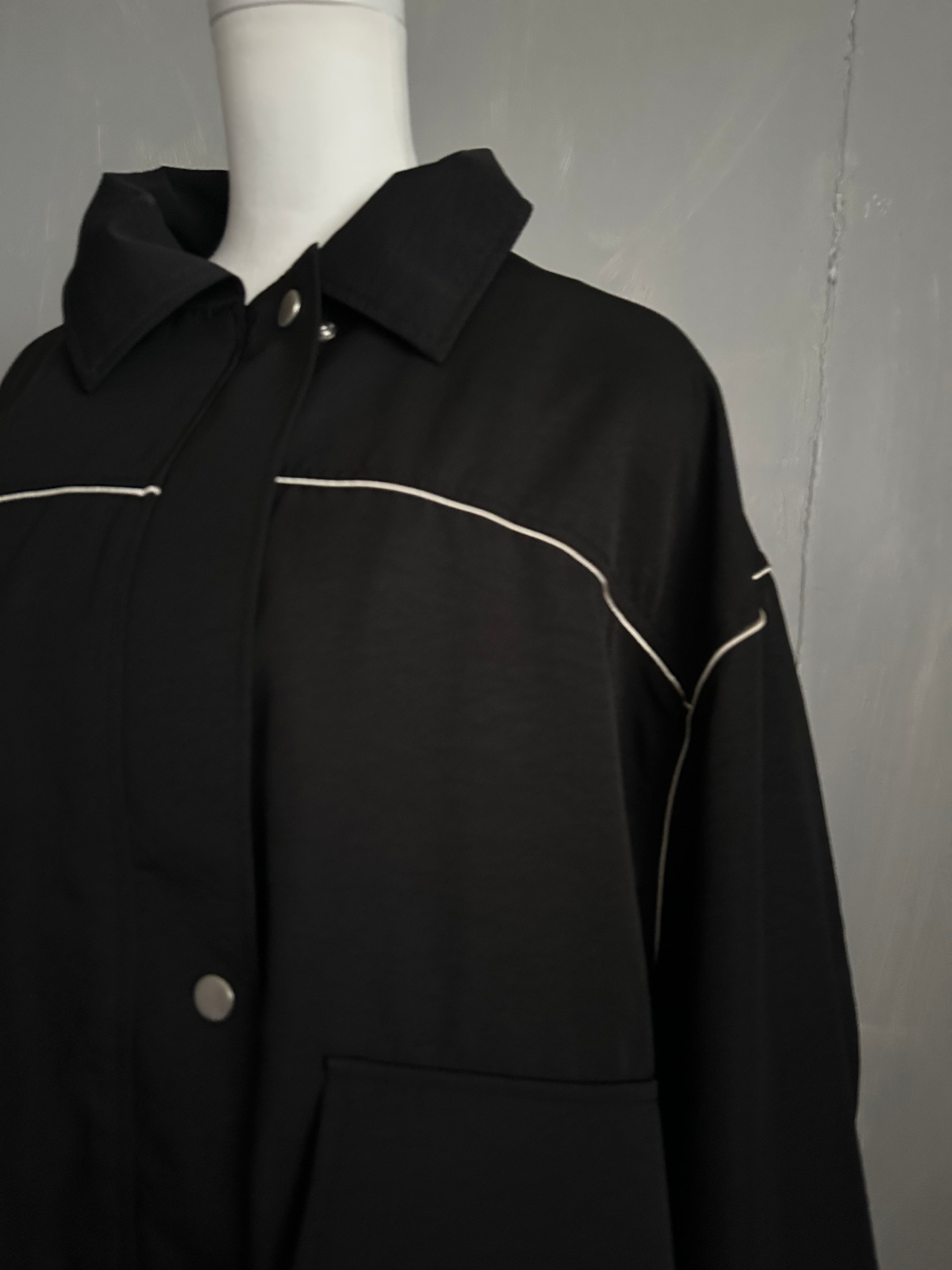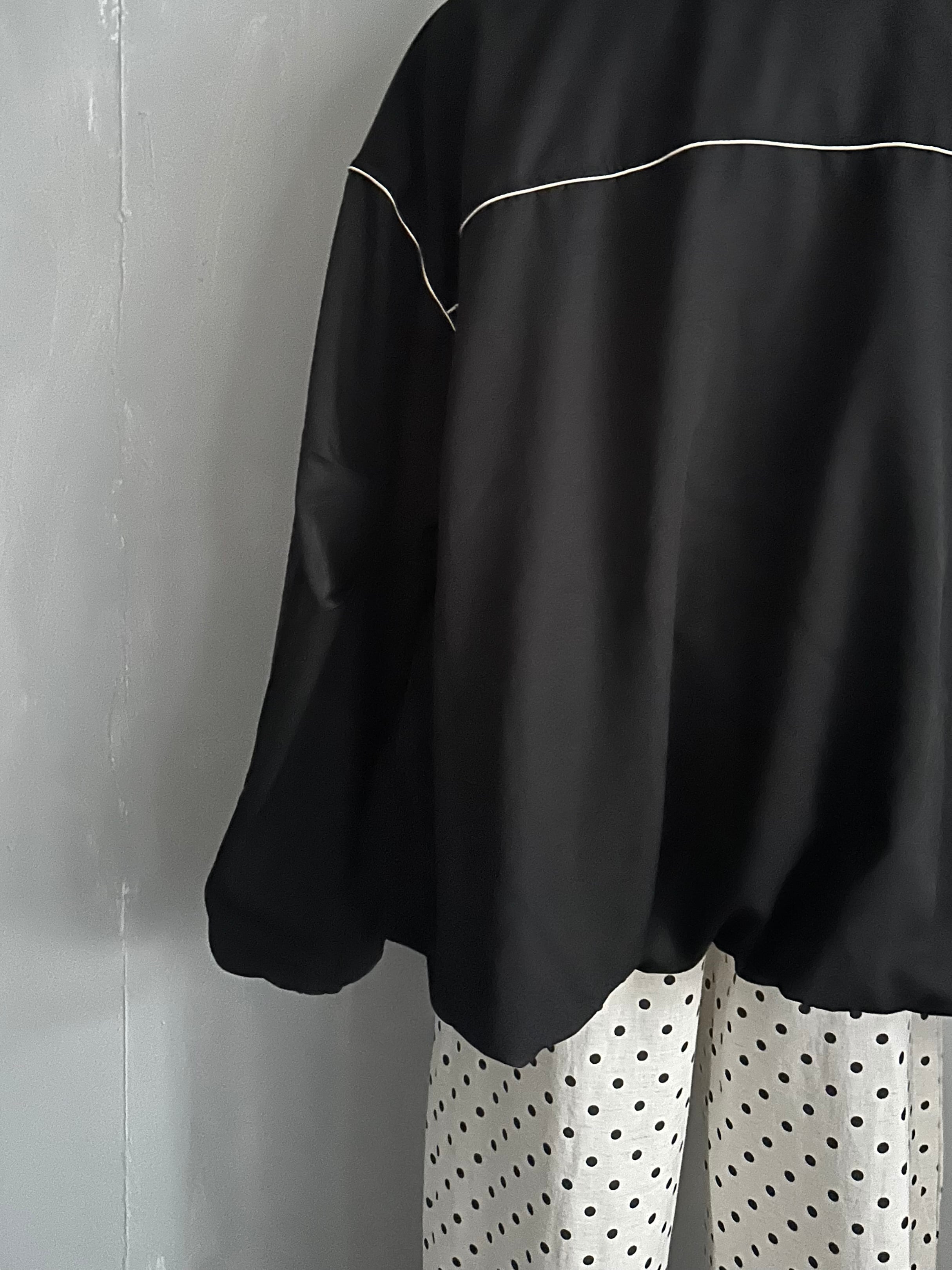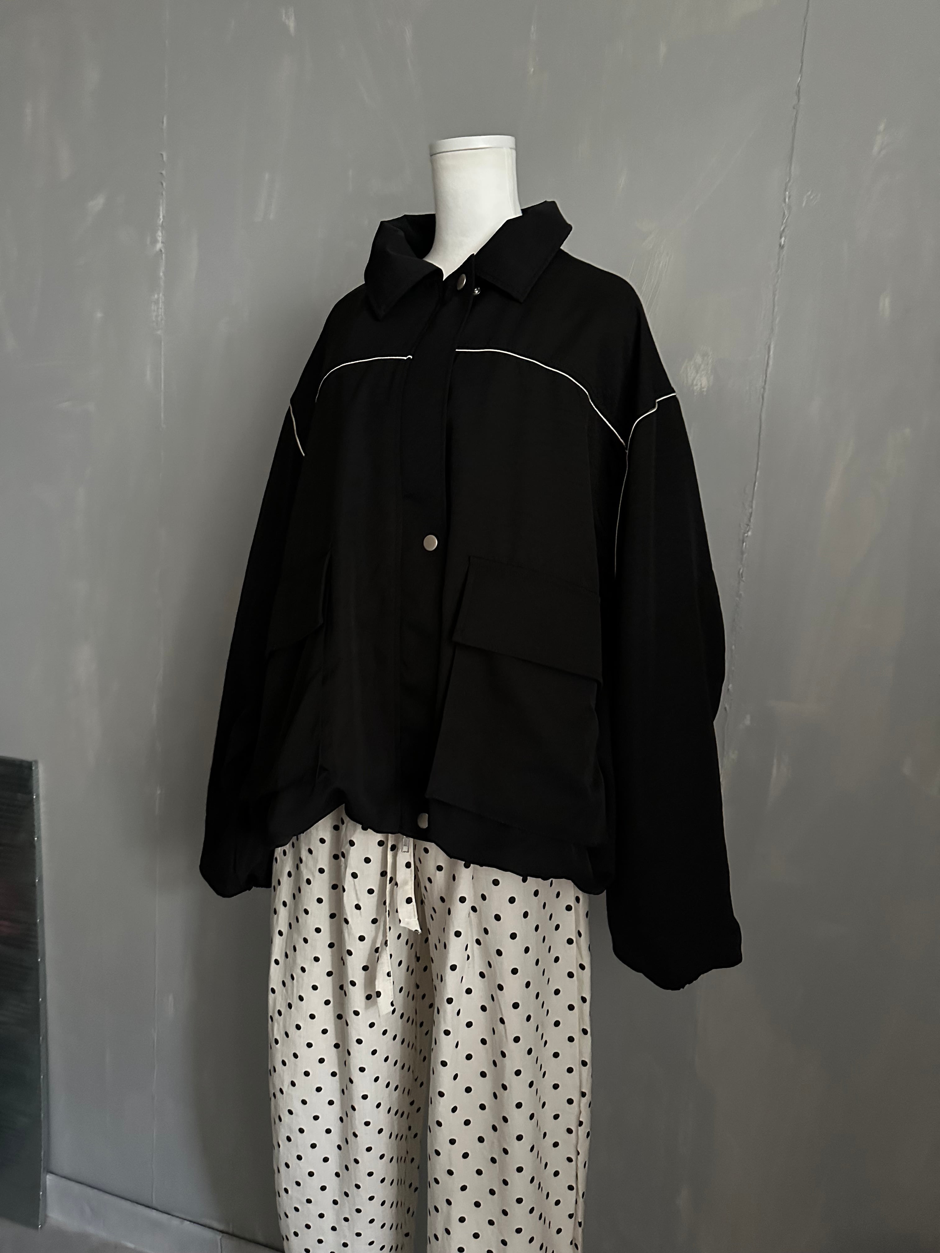 軽量パイピング合繊ツイルバルーンナイロンJK/ブラック