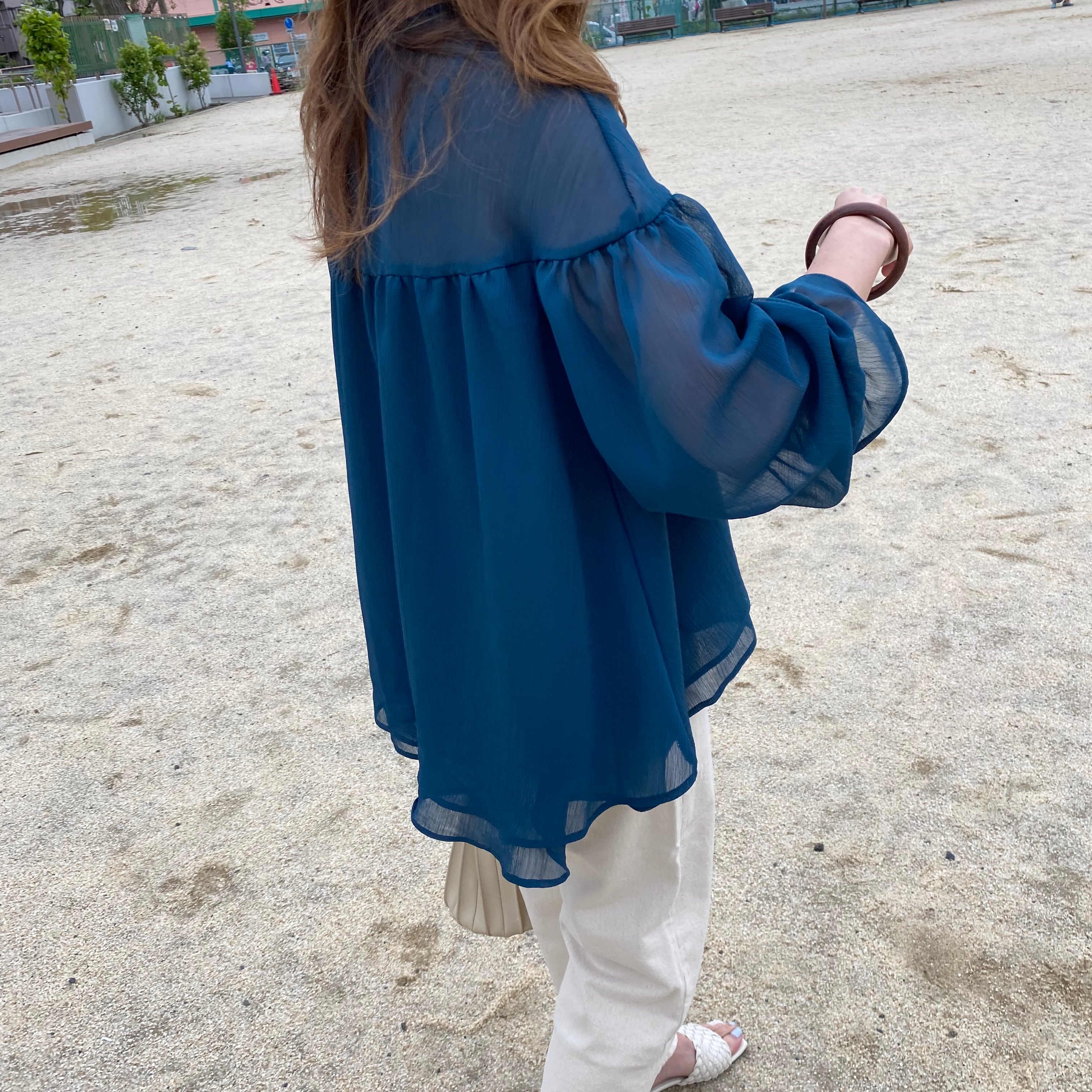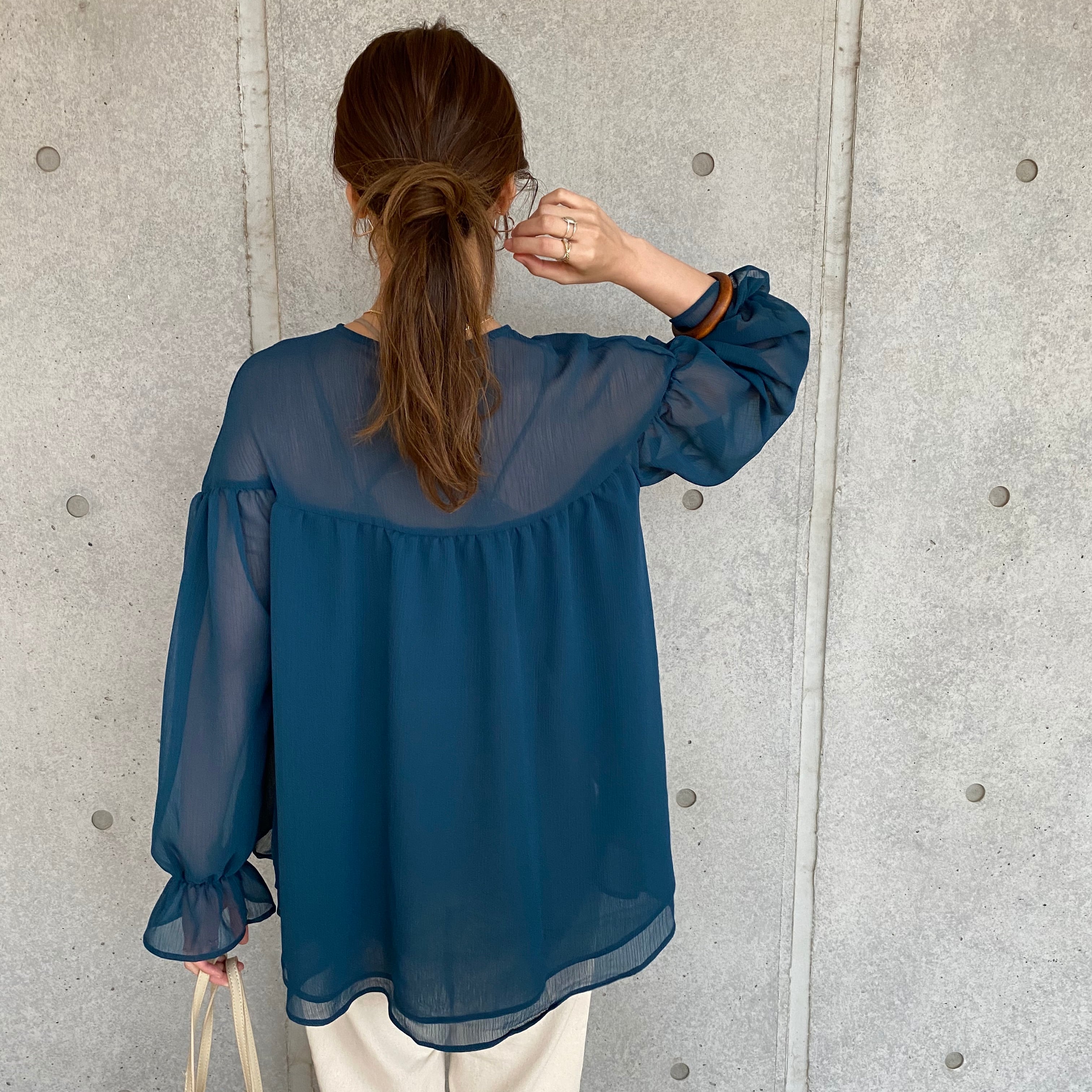 ✔︎クレープシアーアシメBL/ブルーグリーン