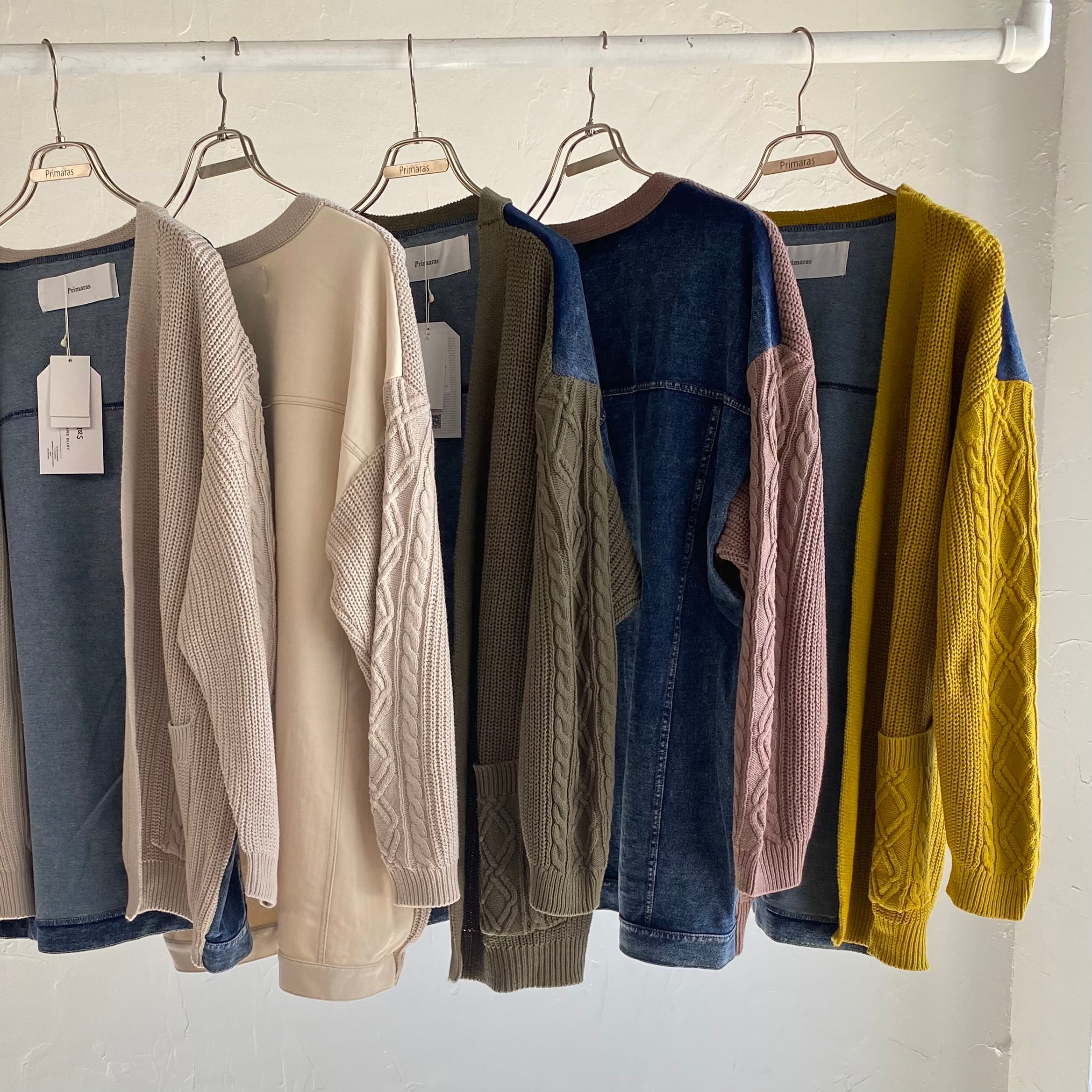 originalデニムコンビボリュームケーブルニットCD/マスタード