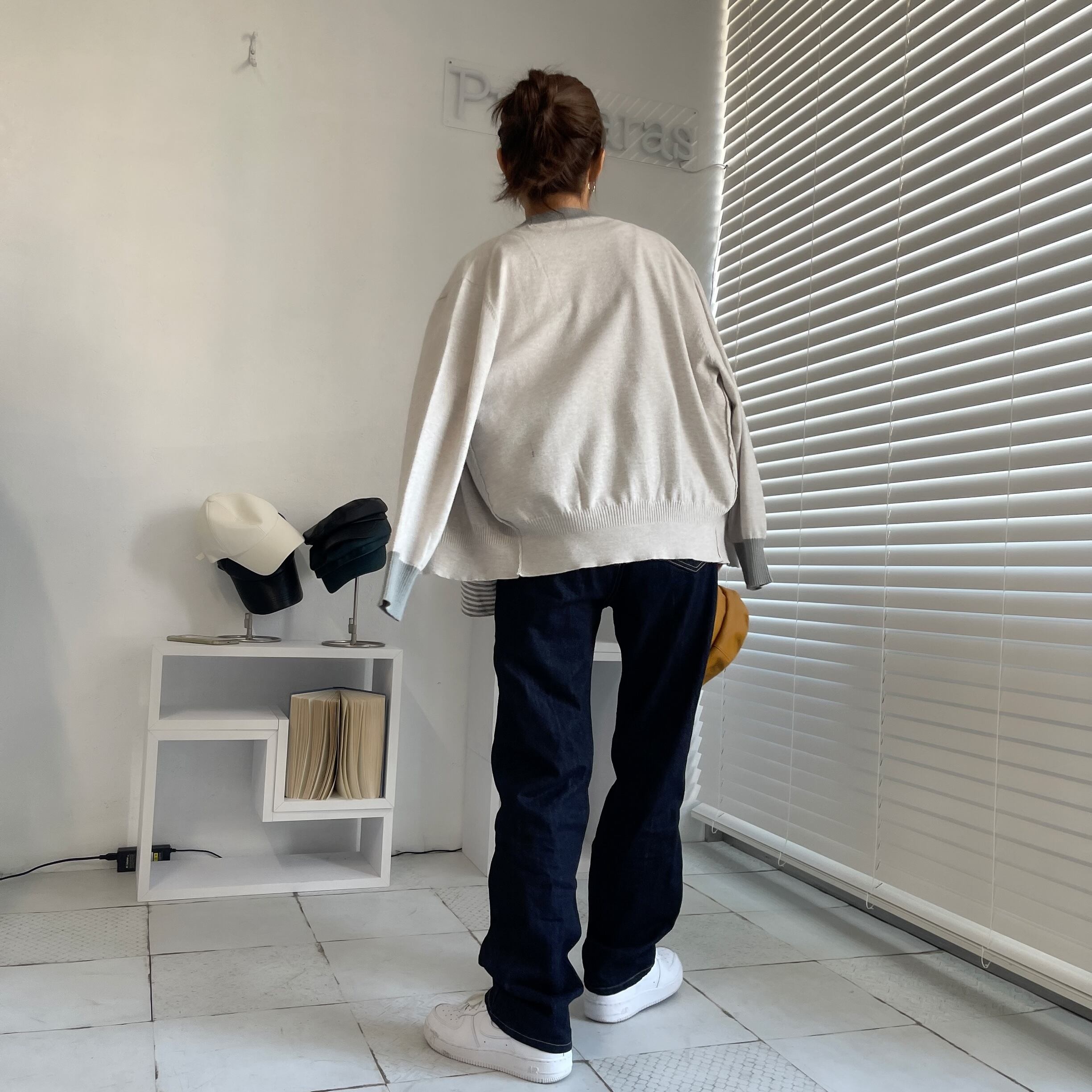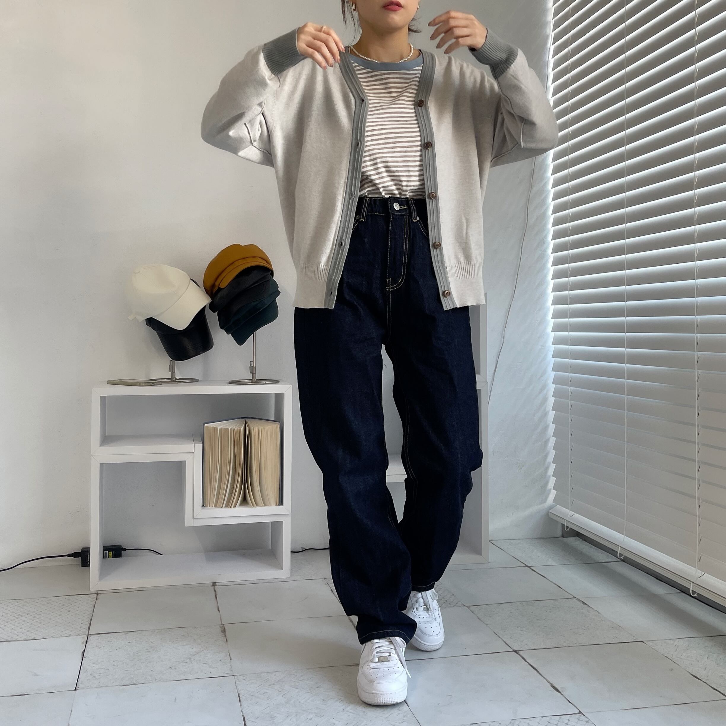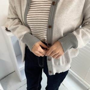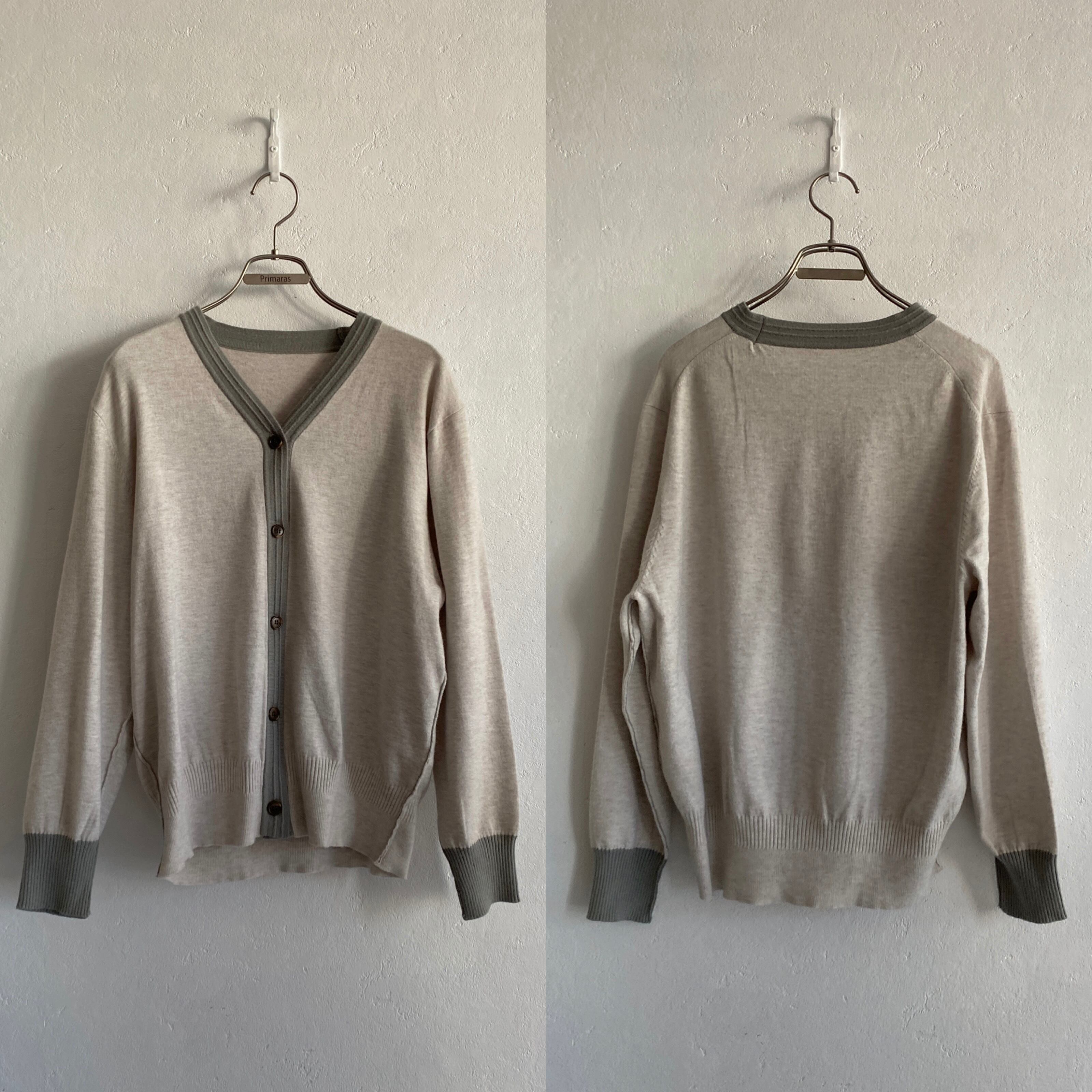 配色バイカラーニットカーディガン/グレージュ