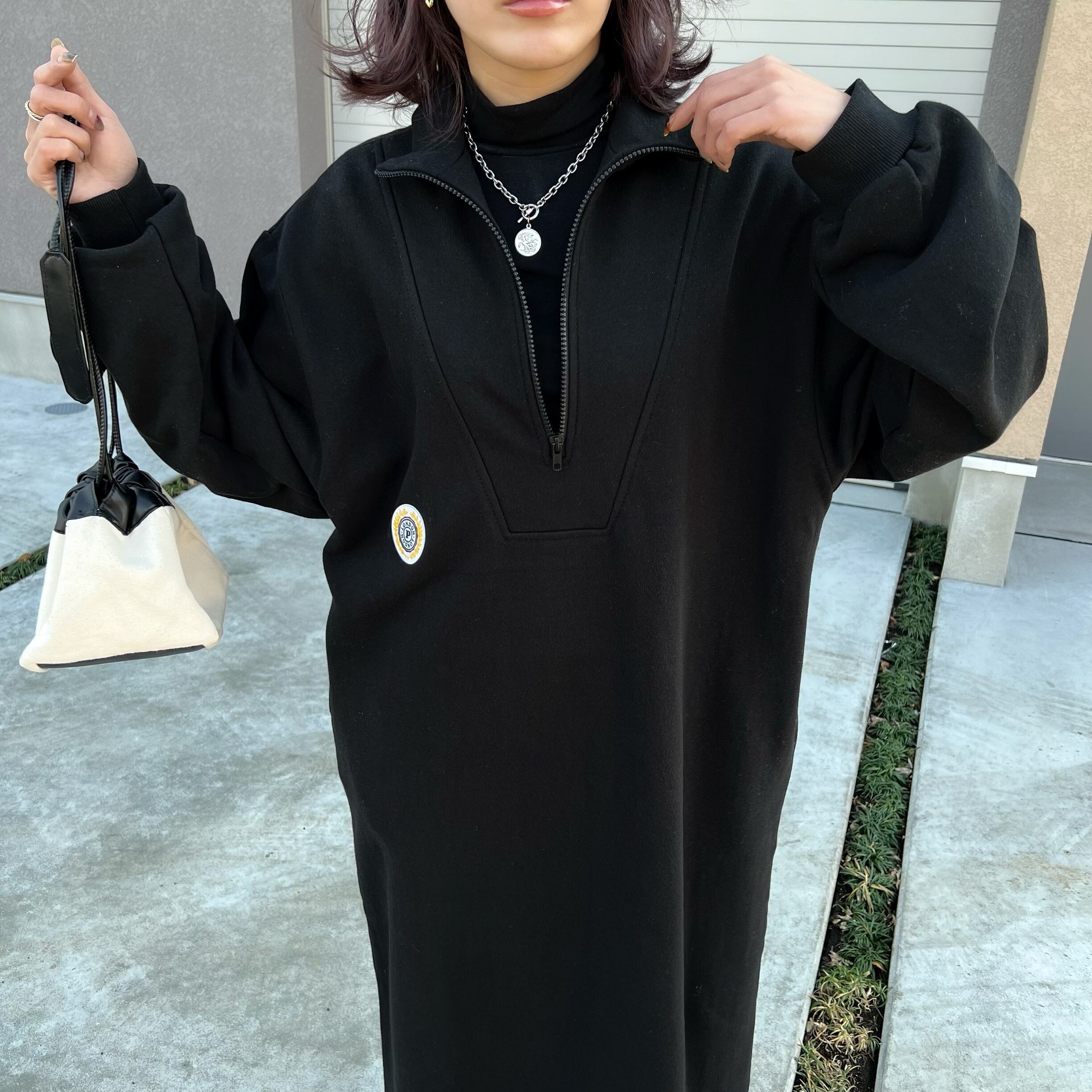 Round leaf embroidery Wappen ハーフジップスウェットOP/ブラック