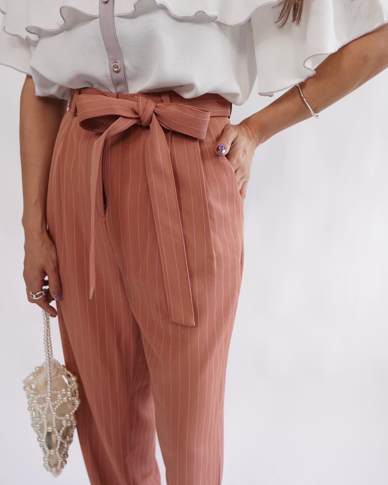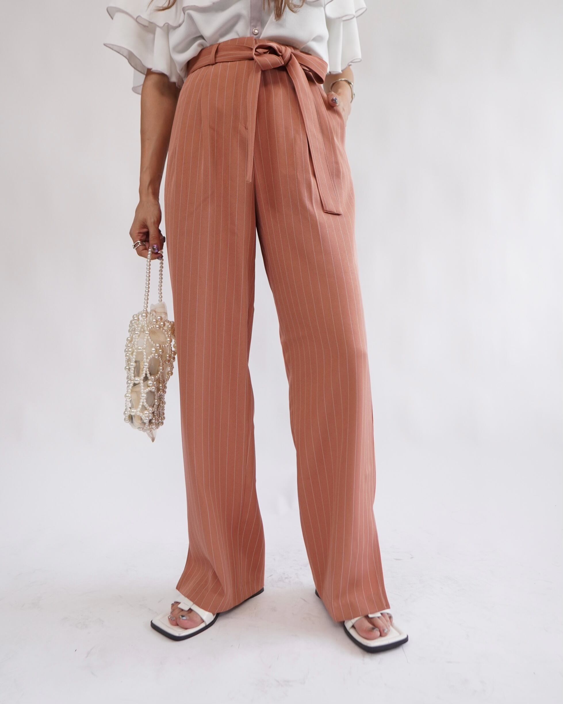 ハイウエストセンタープレススリットSL/ピンクストライプ