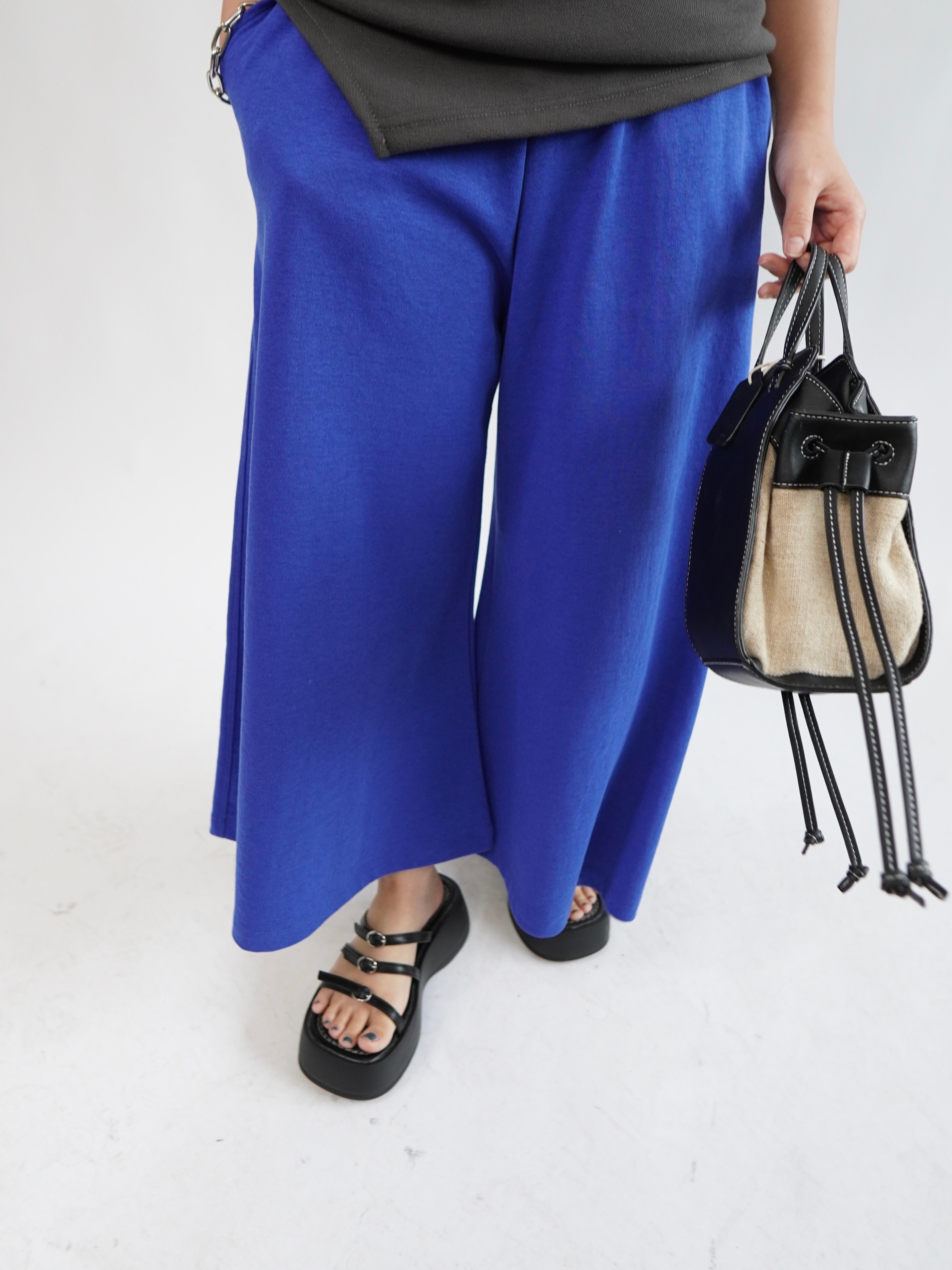 コットンギャザーカラーワイドスウェットpt/ブルー