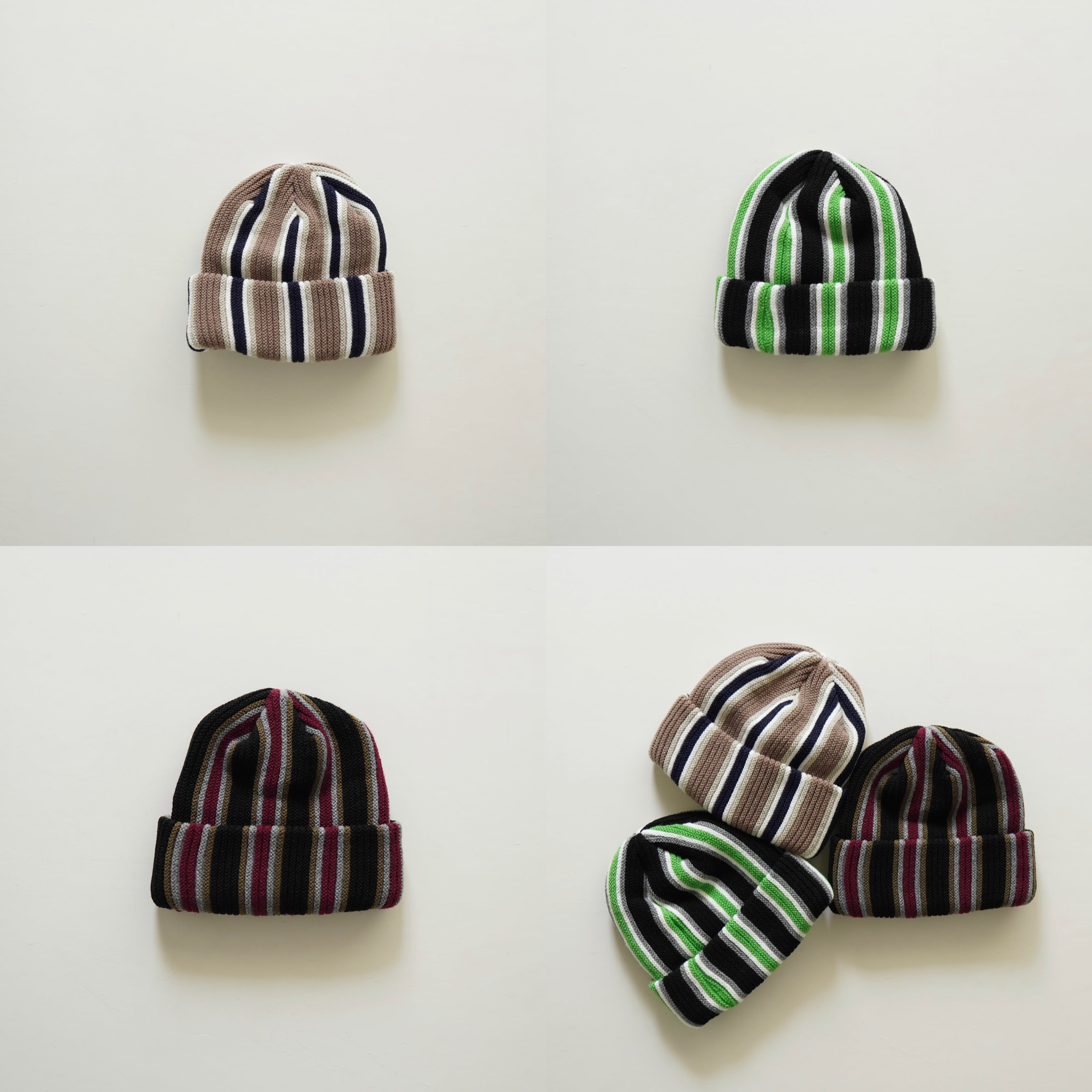 ストライプ編みビーニー/3color