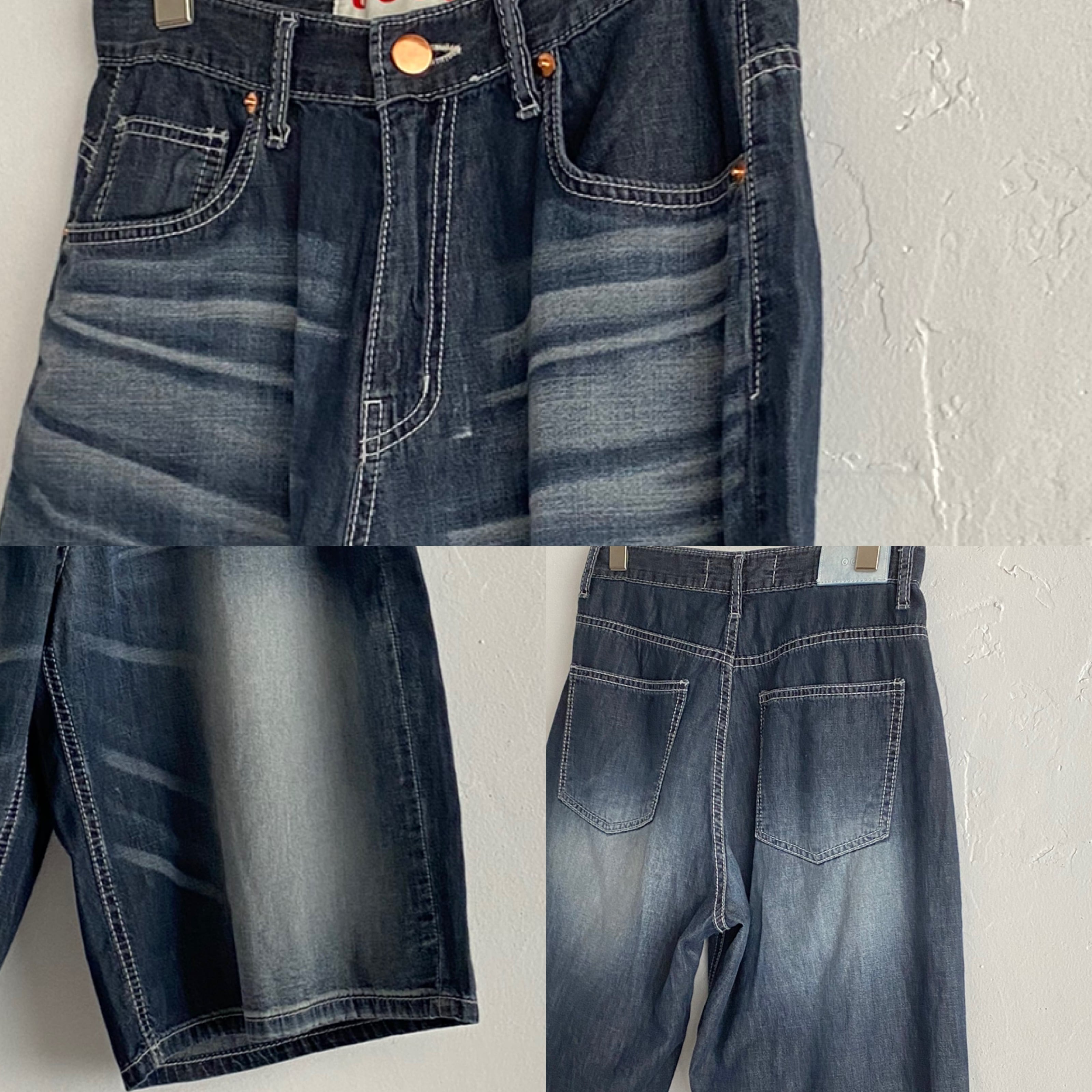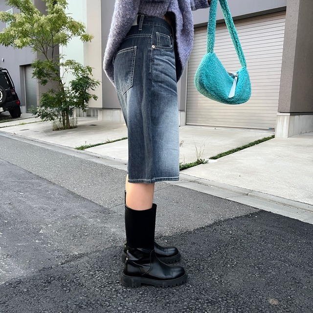 柔らかな質感のストレスフリーハーフパンツ・ワイドなシルエットで脚をスタイリッシュに見せてくれ、ダークネイビーに、ヒゲ加工のウォッシュデニムが落ち着いた印象に。大人女子も抵抗無くお召し頂けます。