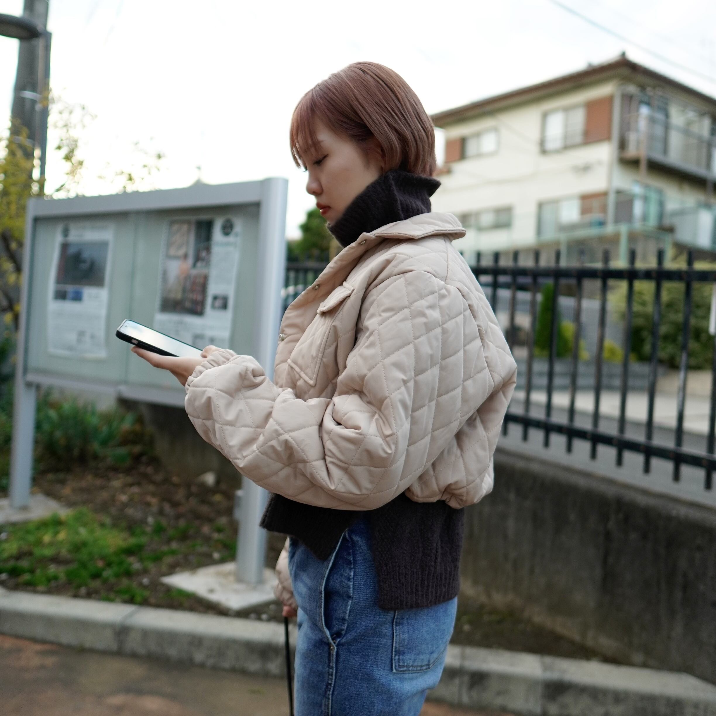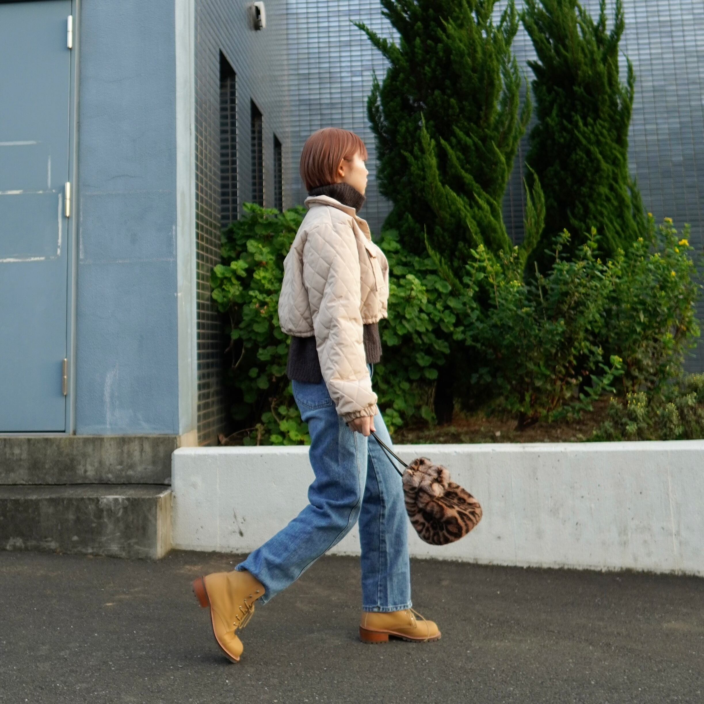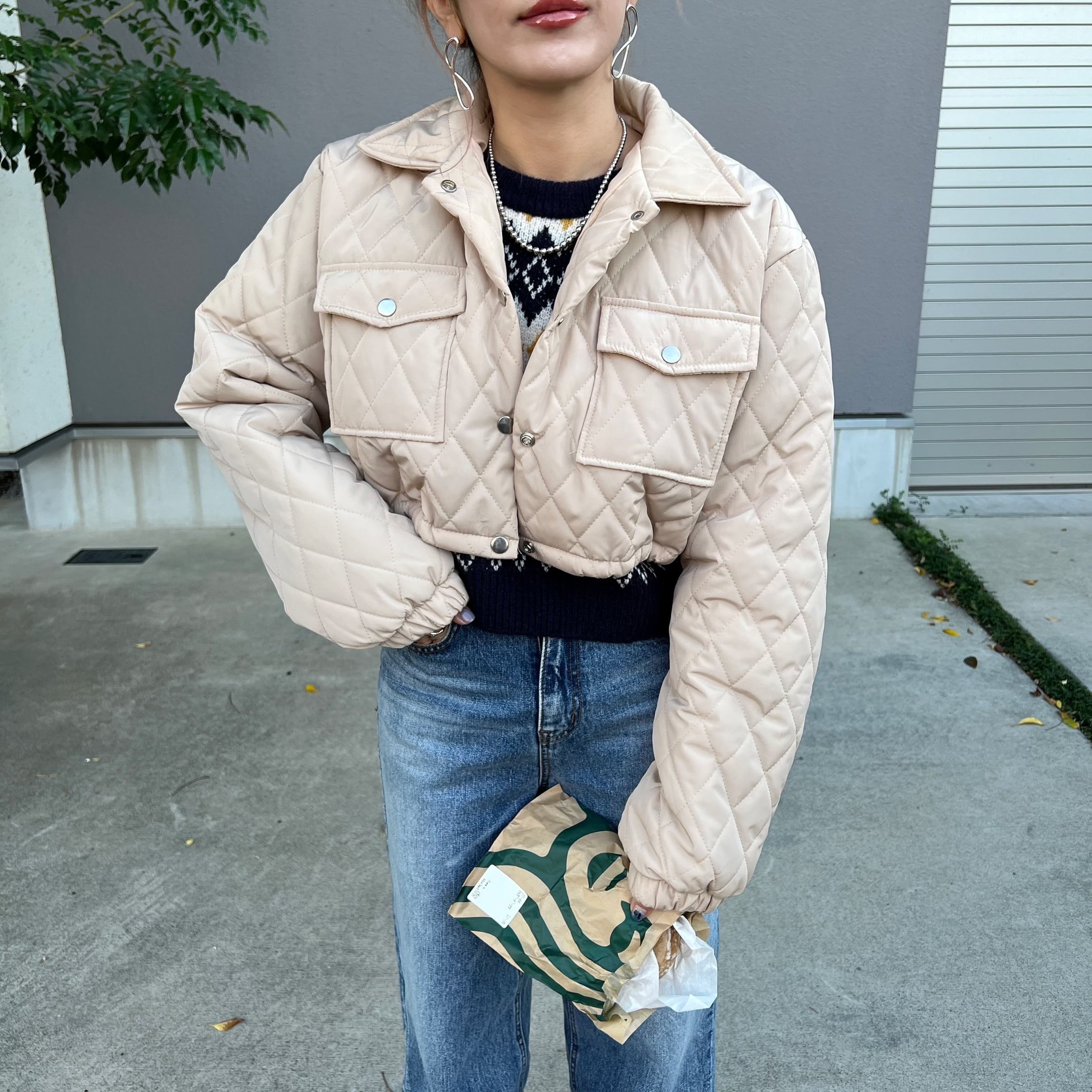 ショート丈キルティングブルゾン/White