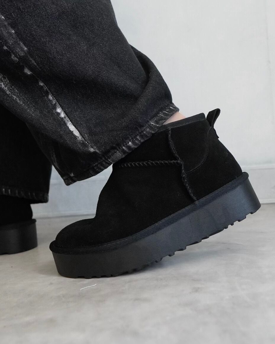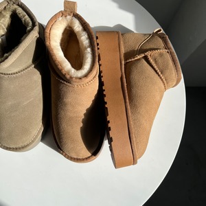 厚底フェイクムートンファーモックshoesブーツ/3color