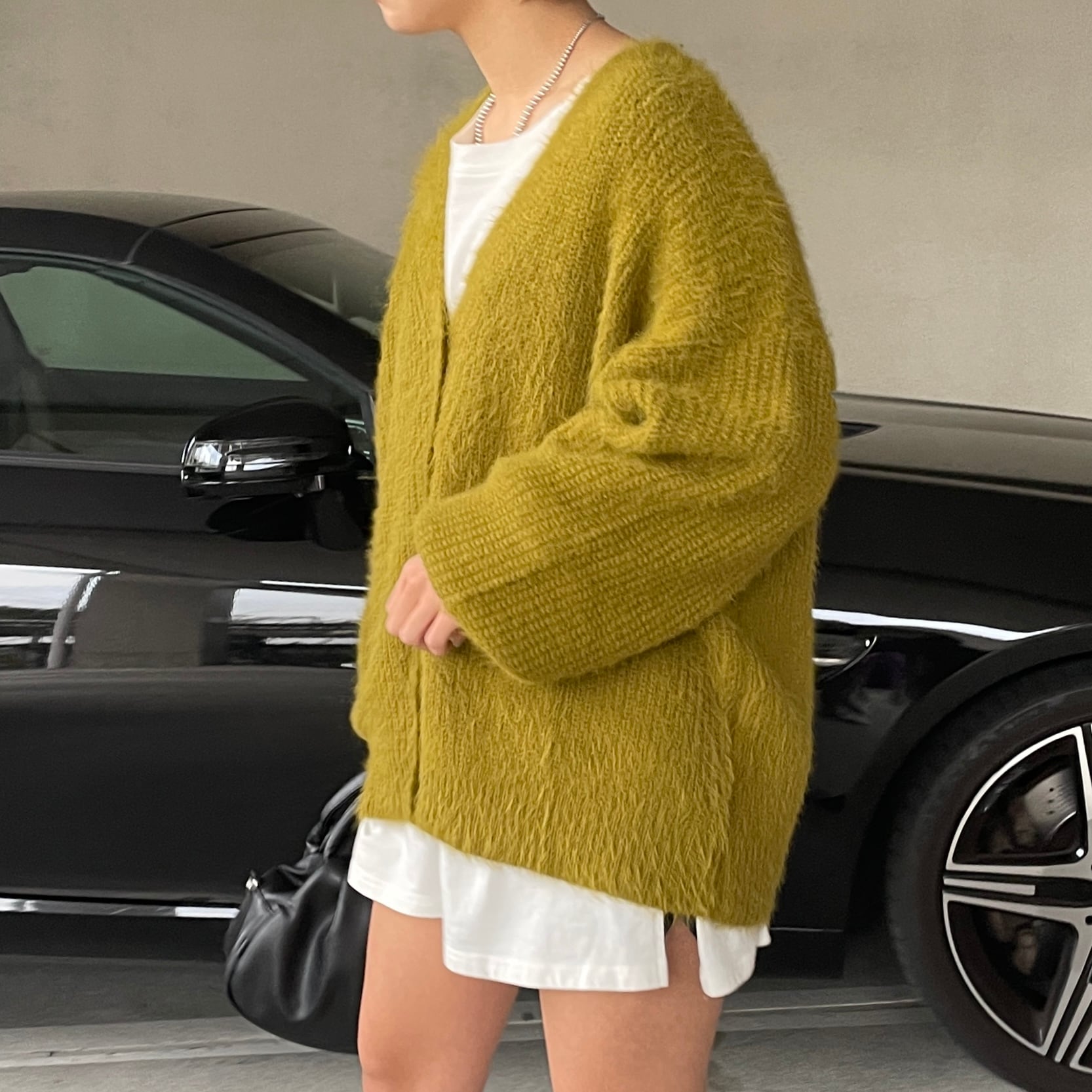 フェザーヤーンBigニットカーディガン/イエロー