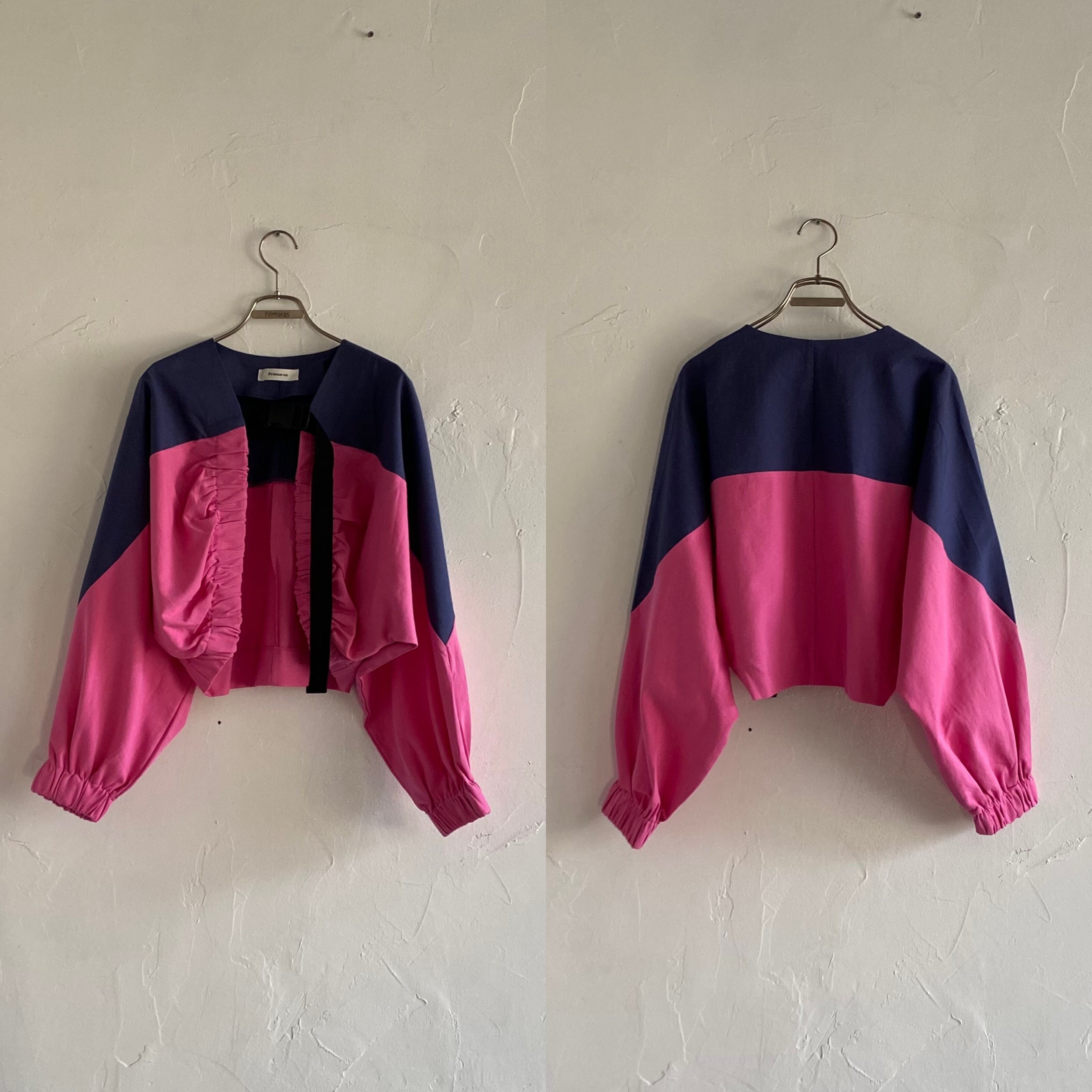 ビビットカラーで目線を上に持っていく事で、コーデにメリハリをつけて、着痩せスタイルに。スタイリッシュ×ボリューム袖のバランスをお楽しみ頂けます。前見頃に施されたベルトは、お好みで開閉可能、ロング丈ワンピやスカート・デニムとの相性もよく、1着で様々なスタイリングの引き立て役となります。