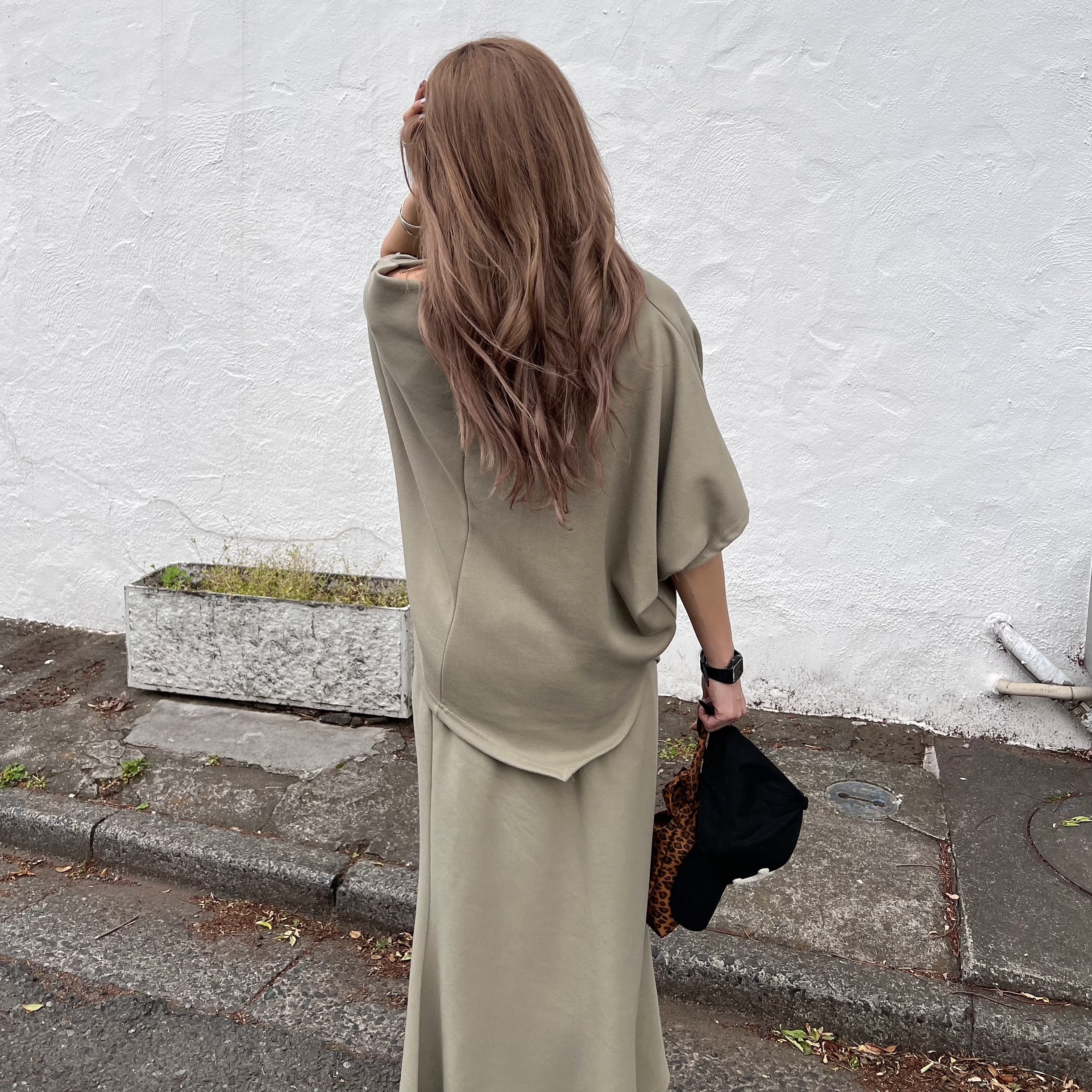 unbalance hem design SET UP/khaki