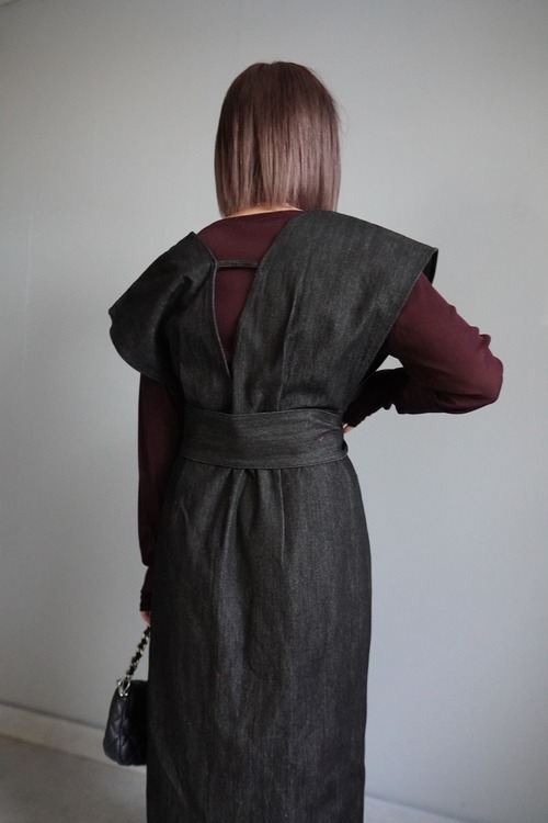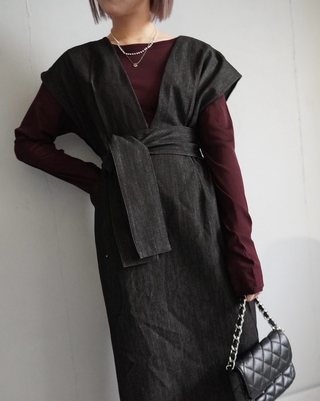 合わせるトップス次第でカジュアル〜キレイめ迄着回せる便利ジャンスカ。シンプルなデザインでかつ、アームホールも広めなディテールで様々なトップスとの着回しでオシャレコーデに仕上がります。深めVネックが首周りもスッキリとした雰囲気に。ショルダー部分はしっかりと二の腕や肩をカバーするデザインで安心感も◎