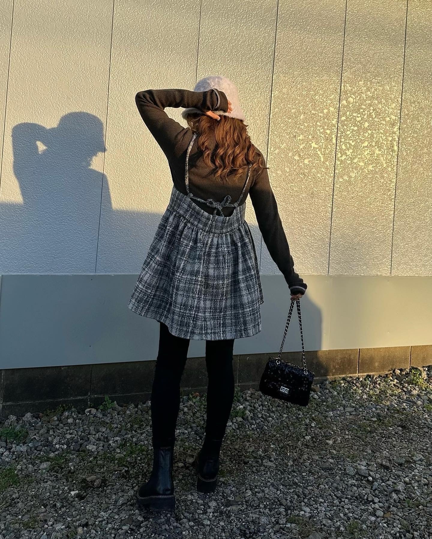 mohair plaid bustierOP/gray×beige