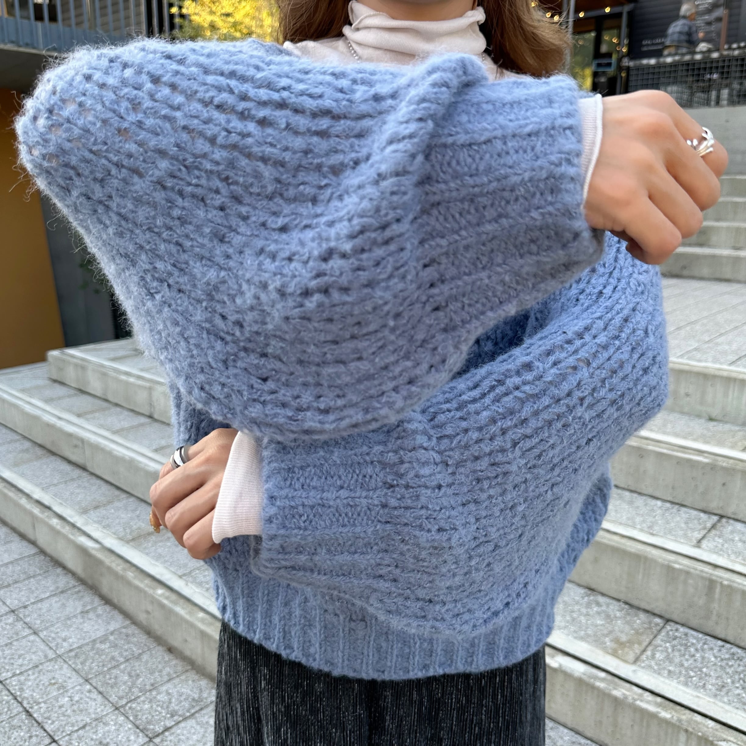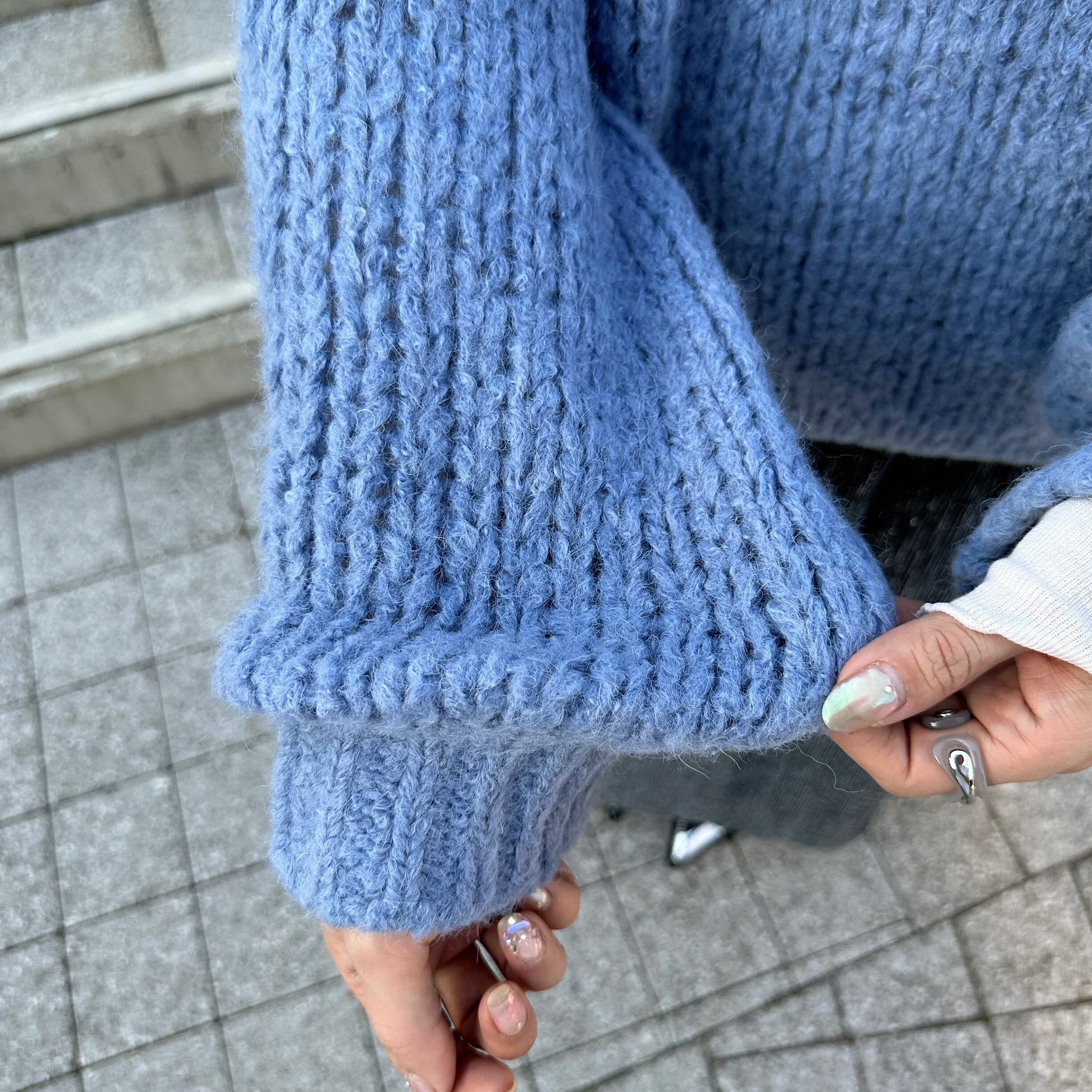 メッシュボリュームニット/ブルー
