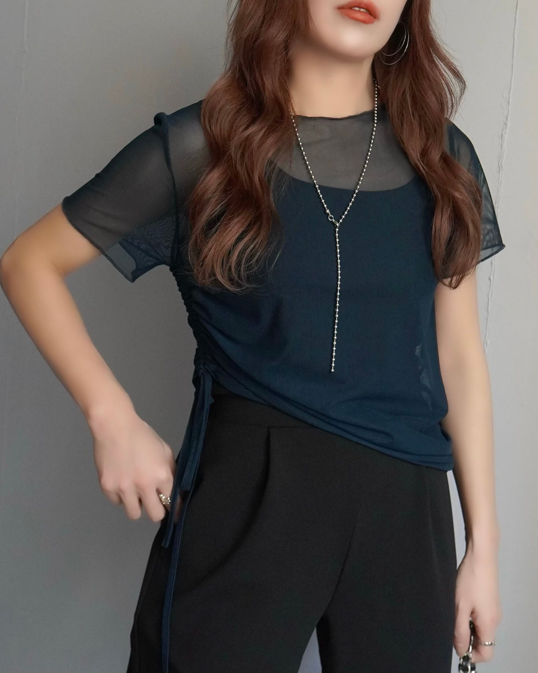 程良い透け感、1枚で着ても。サロペットやキャミワンピース等の中にも、又レイヤードコーデにも活躍致します。