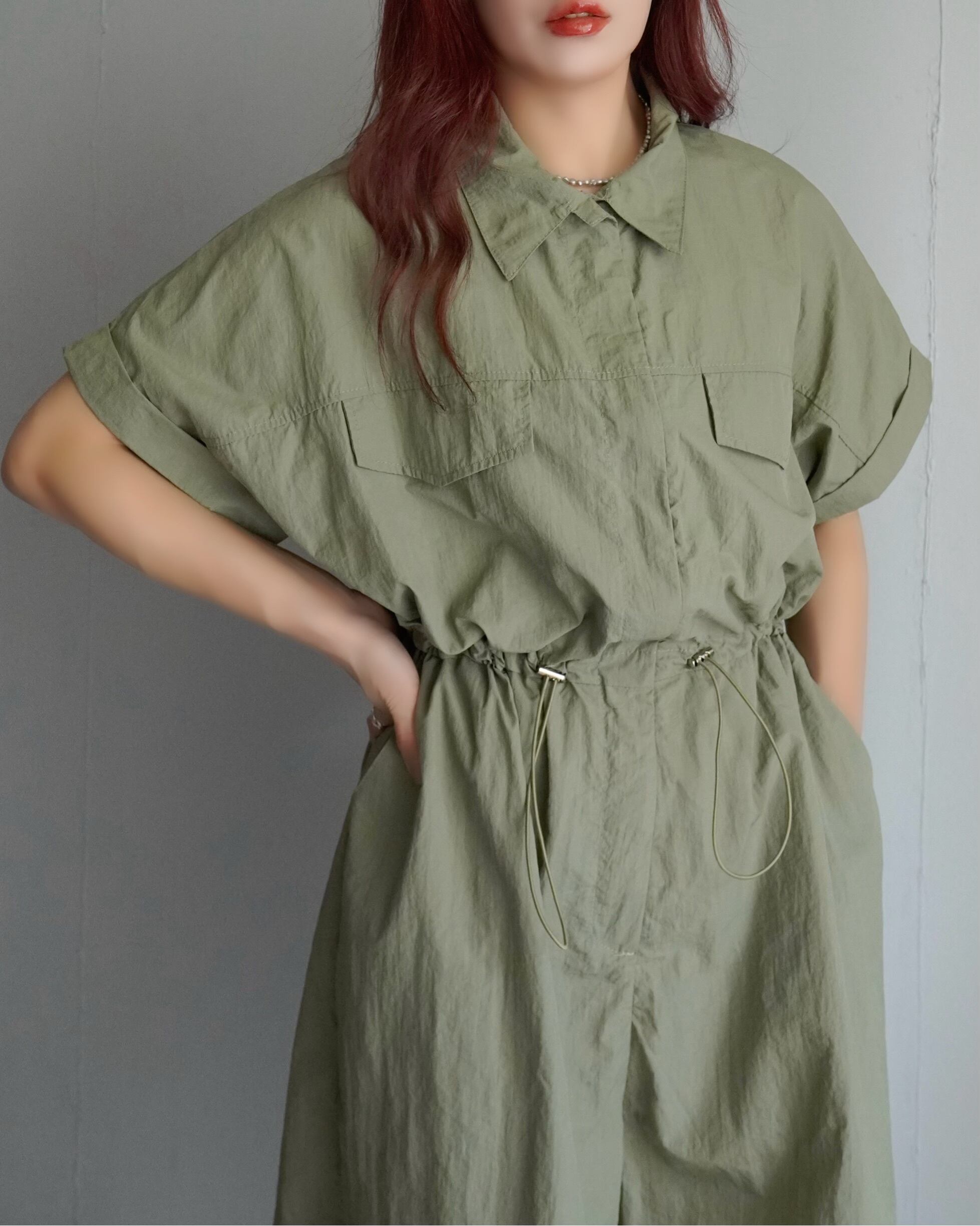 撥水ナイロンオープンカラーオールインワン/khaki