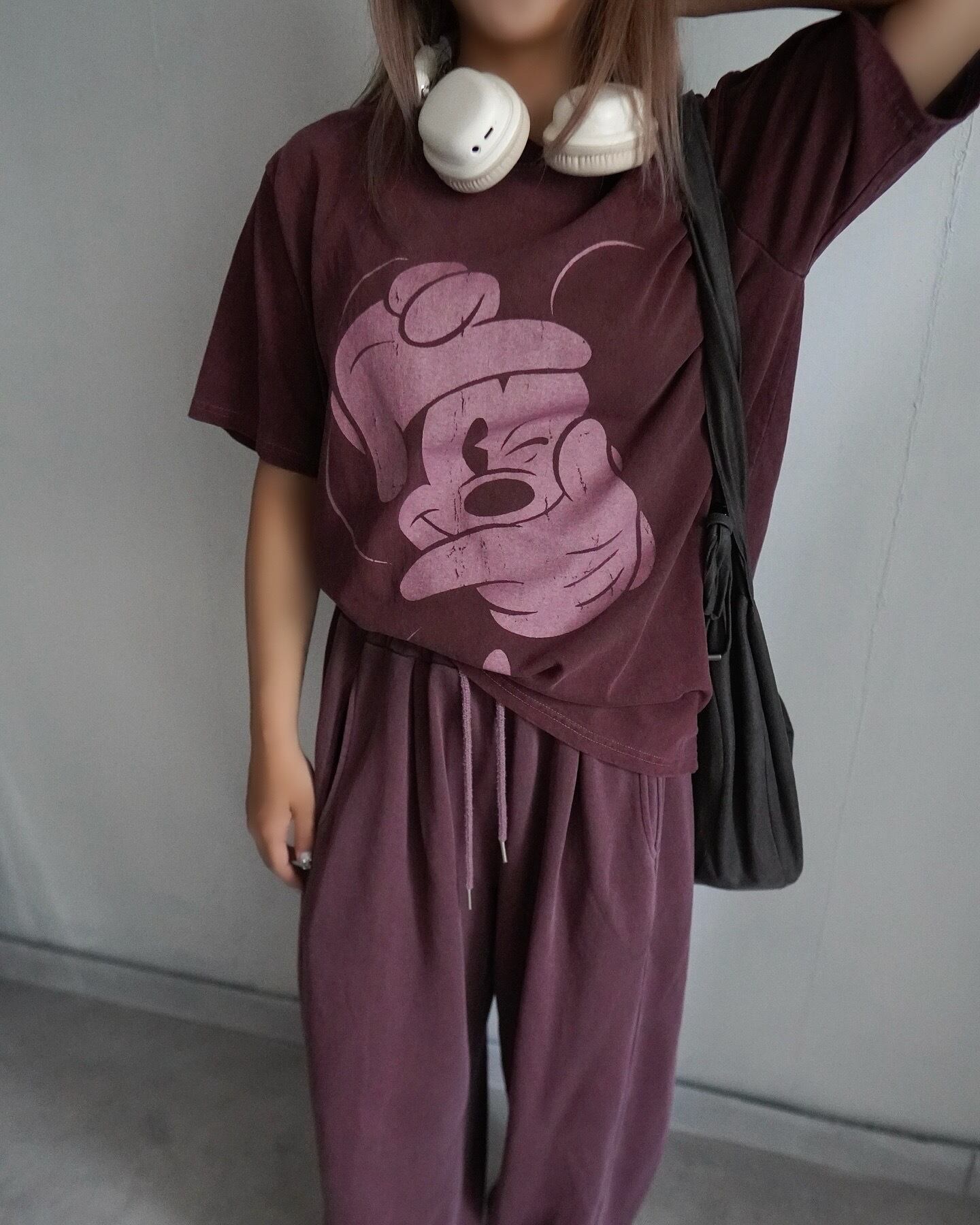 primarasでは毎年定番となったウォッシュドコットン素材に、ビンテージ掠れ加工に、生地と同系色のミッキーマウスロゴが大人もも抵抗なく幅広い世代にご着用頂けます。