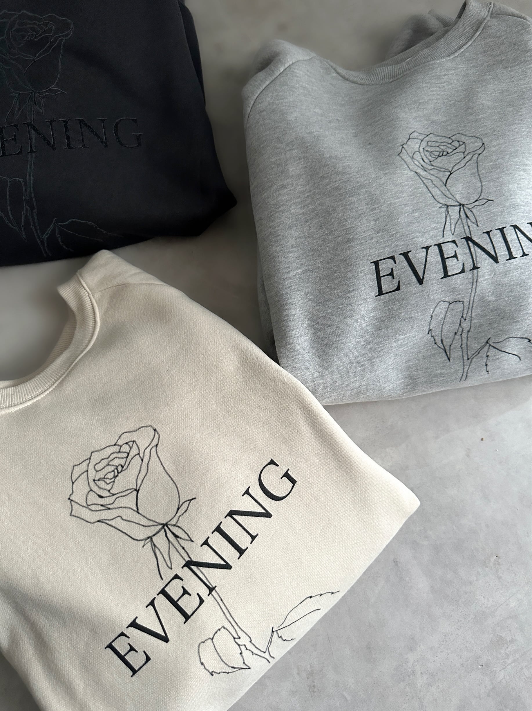 【EVENING】leather patch art スウェット/チャコール