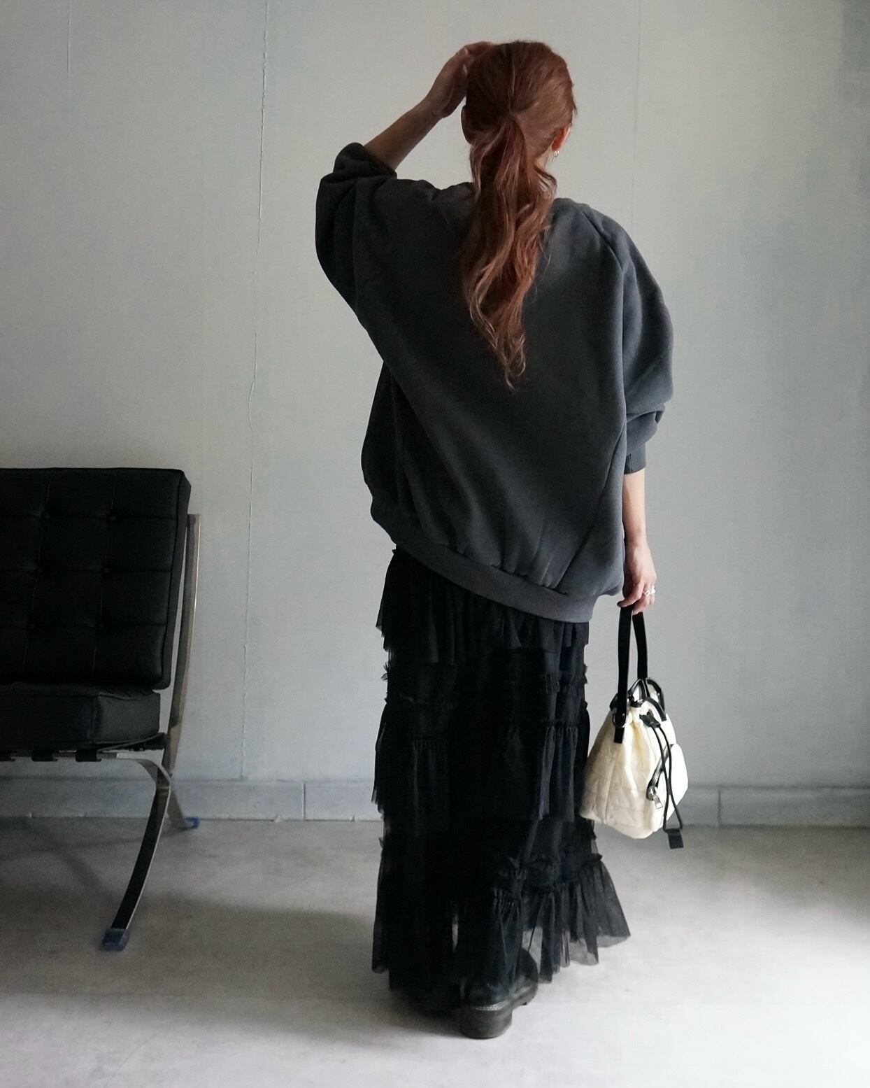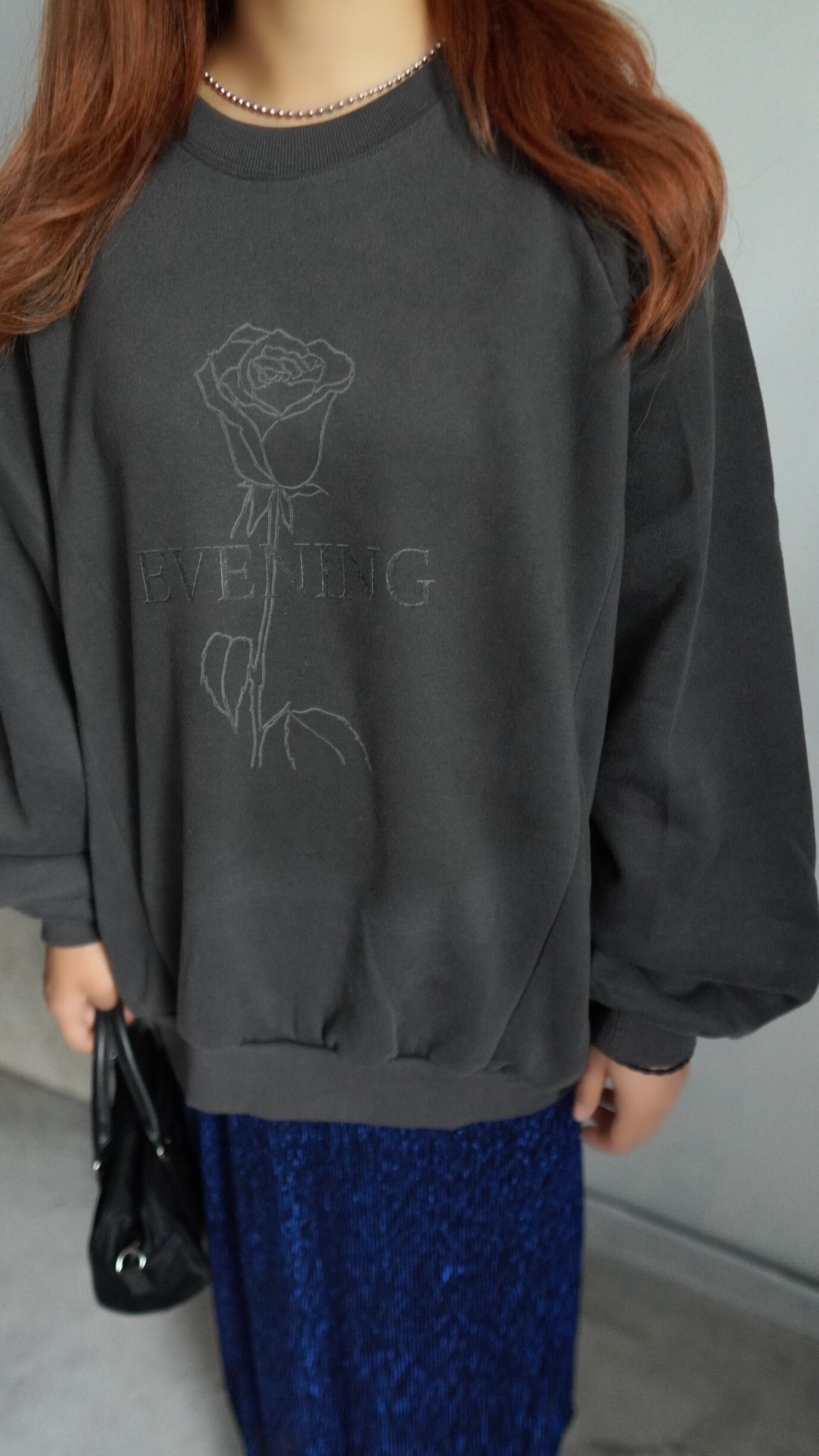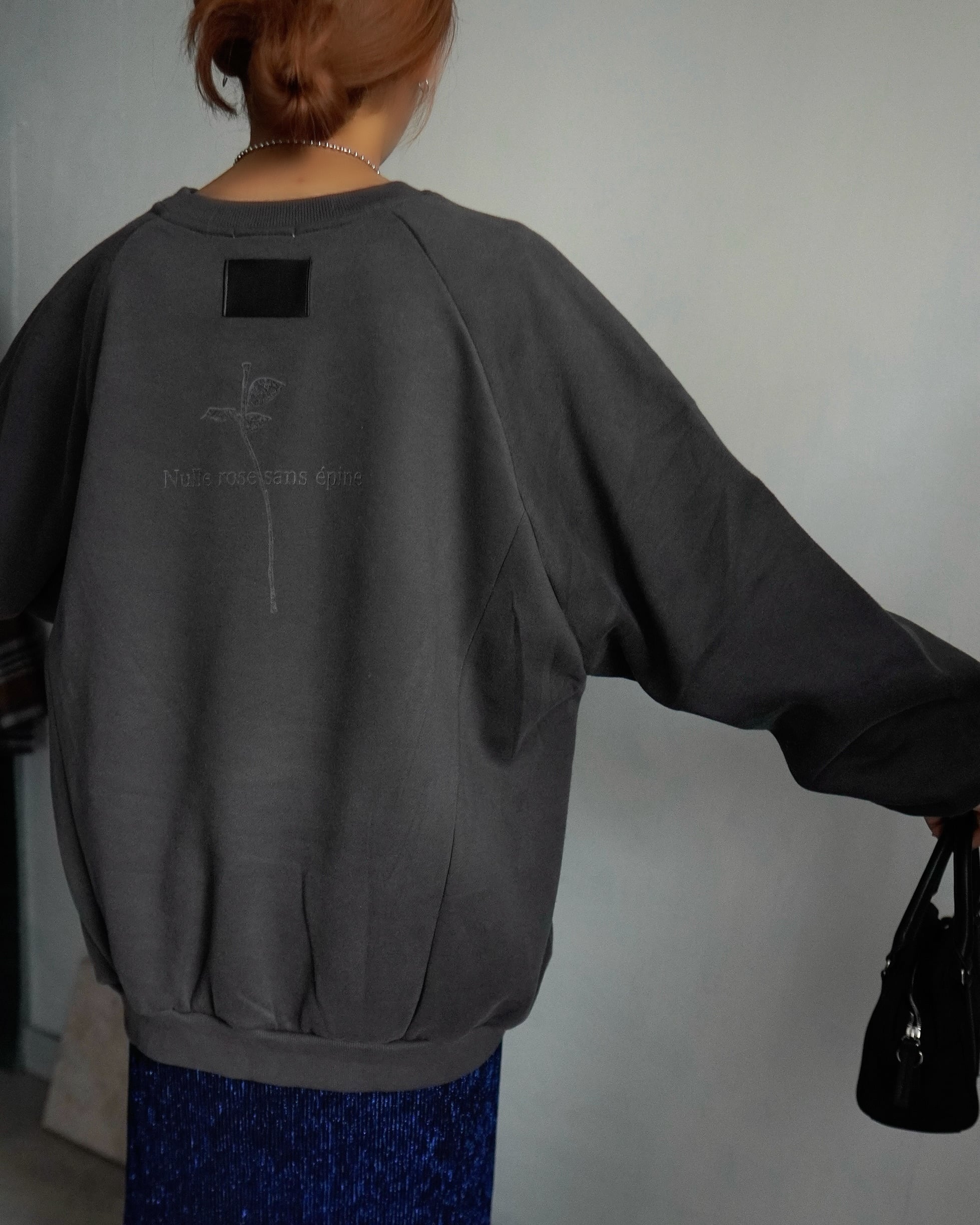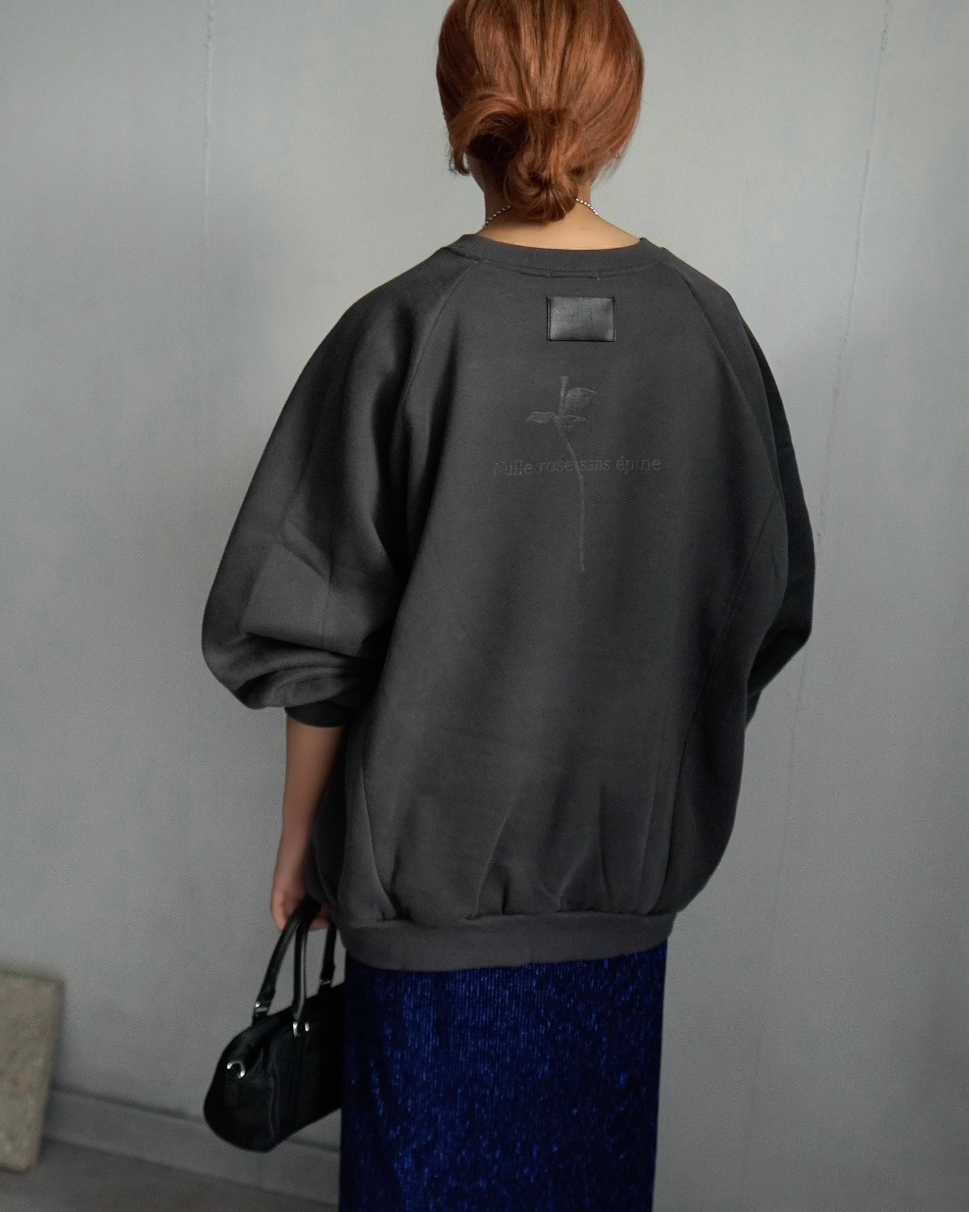 安心感のあるルーズな着丈に、軽く・気張らない上品な印象の大人スウェット ・1枚でモードライクな雰囲気がお楽しみ頂けるoriginalartdesign。背面にはエコレザーパッチにrose branch ・フランス語でNulle rose sans épine messagelogo. 360°飽きのこないデザイン。