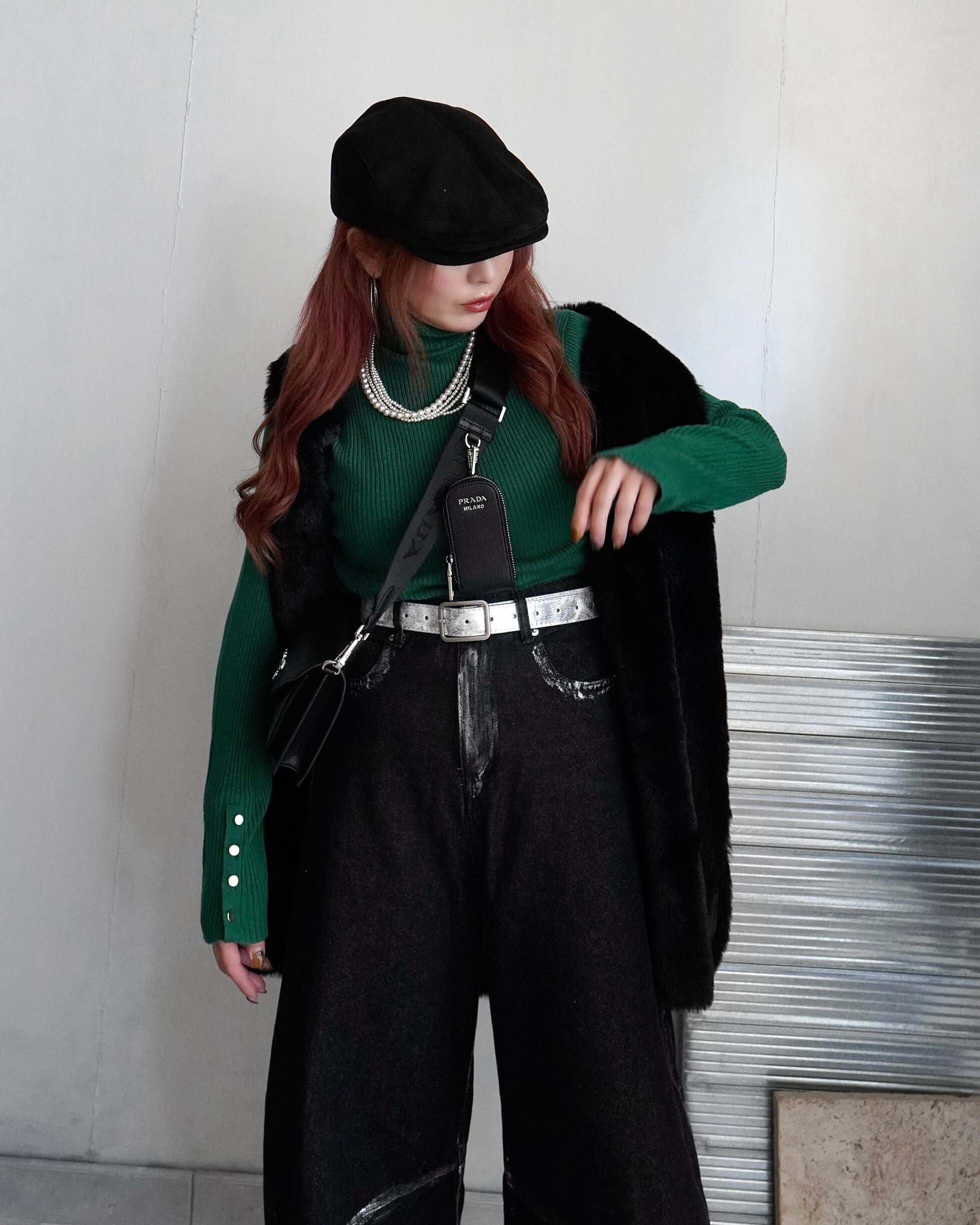 1枚で着映えするので、シンプルにデニムコーデや、秋冬ワンピース合わせたキレイめな大人コーデ〜ファーベストやダウンベスト等と合わせたレイヤードスタイルにも◎