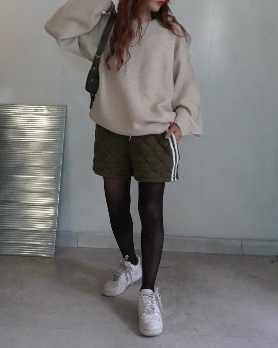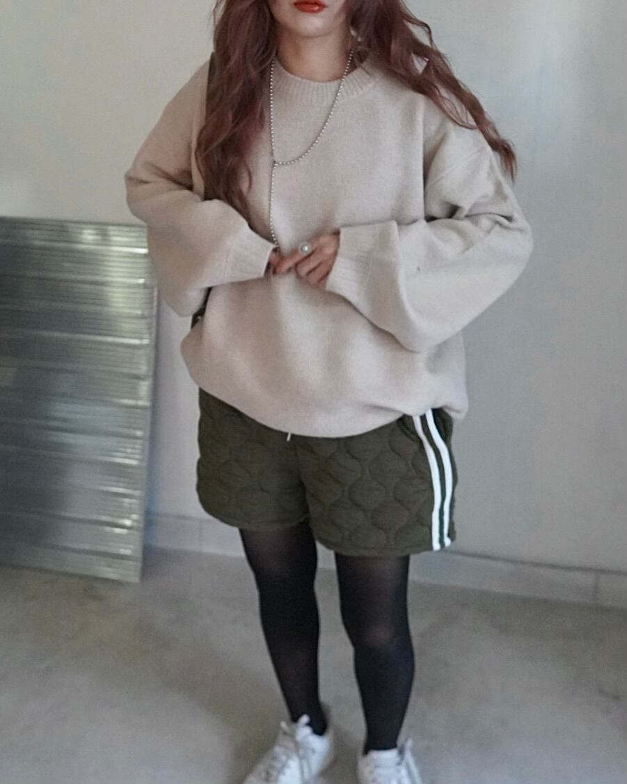 柔らかく、肌馴染みの良いモヘアタッチルーズニット・スタイリッシュボトムスで腰回りカバーコーデ〜ショートパンツやショート丈スカート/ハーフパンツどうと合わせたコーデもオススメ