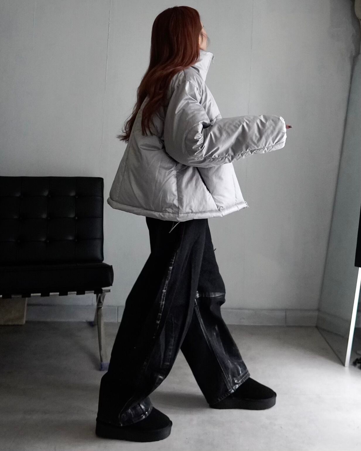 パールシャイニーダブルジップファイバーダウンジャケット/シルバー
