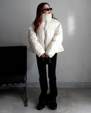 パールシャイニーダブルジップファイバーダウンジャケット/ホワイト