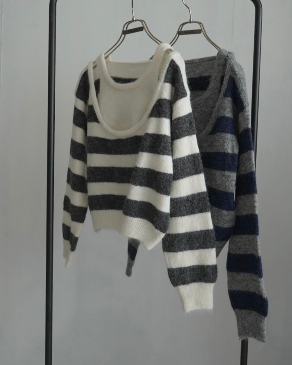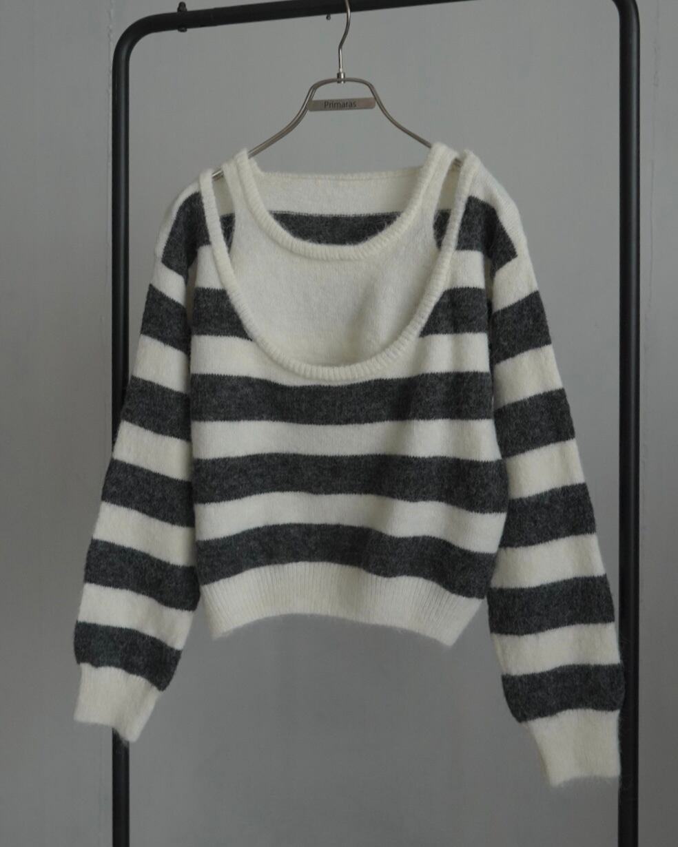 ショルダースリットレイヤードモヘアニット/ホワイト