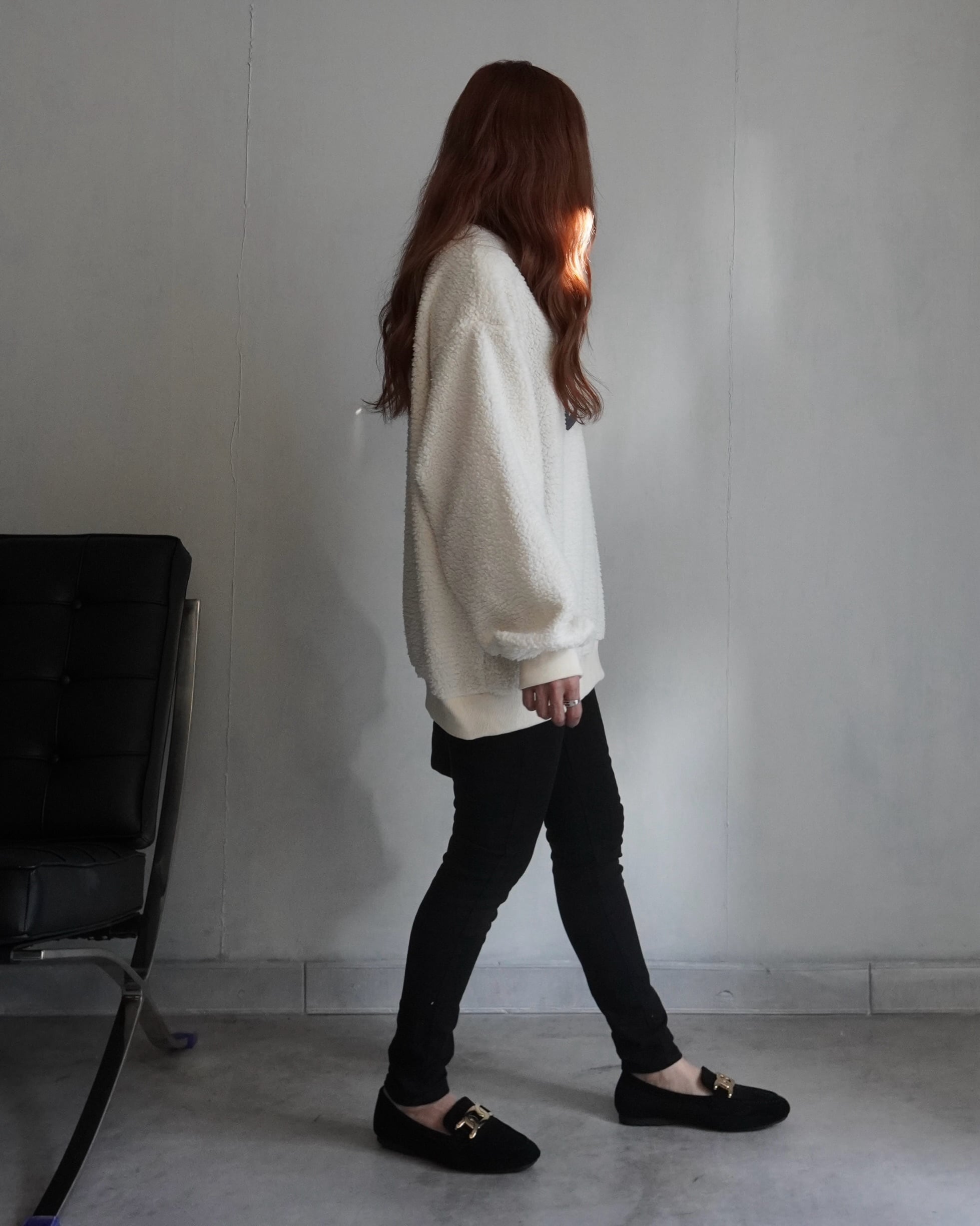 軽く暖かく、肌触りの良いボアプルオーバー 肌寒り柔らかなボアでアウター要らずの日には1枚で暖かく、カジュアルライクなデイリー使いにピッタリ 程良い丈感でデニムやスウェット等と合わせたトレンドカジュアルコーデがサマになります。
