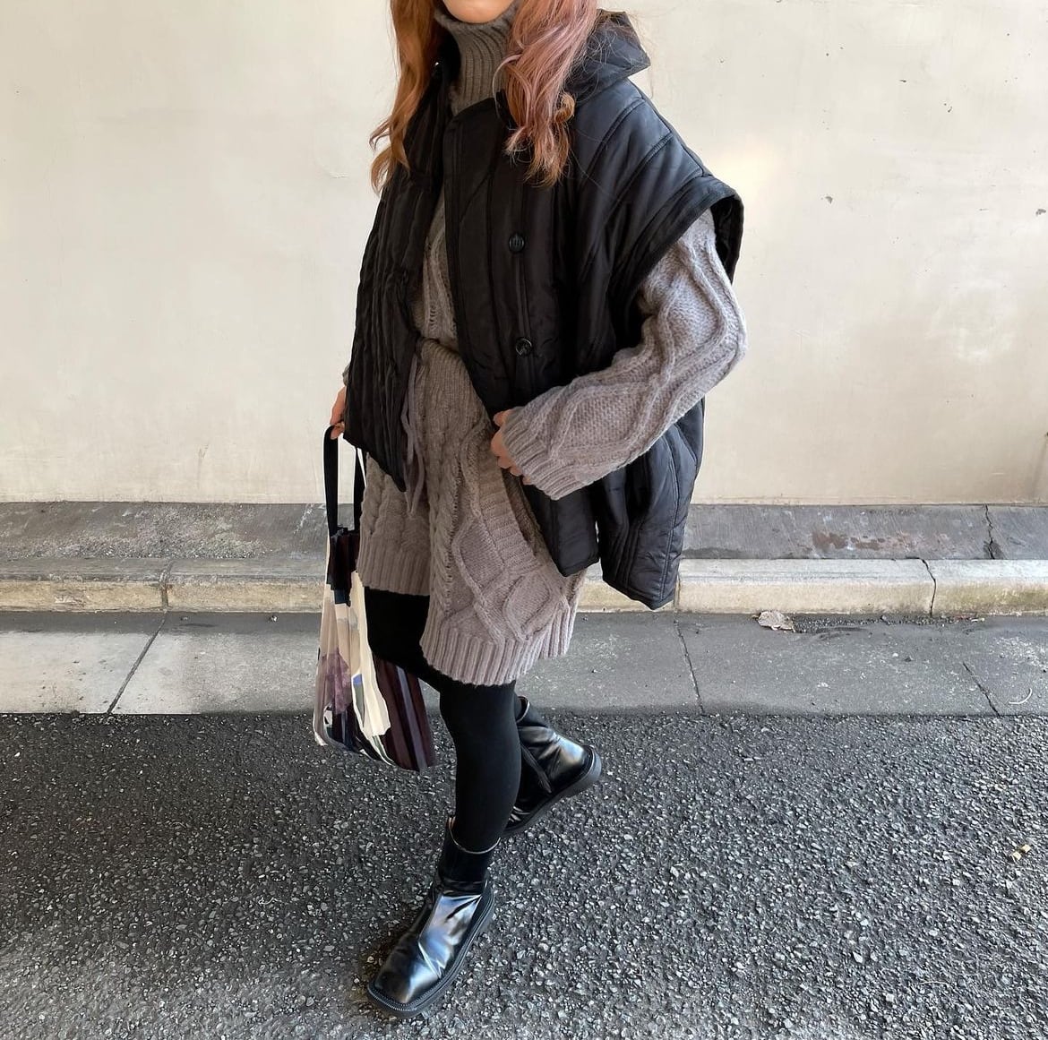 2wayキルティング中綿ベスト/ジャケット/ブラック