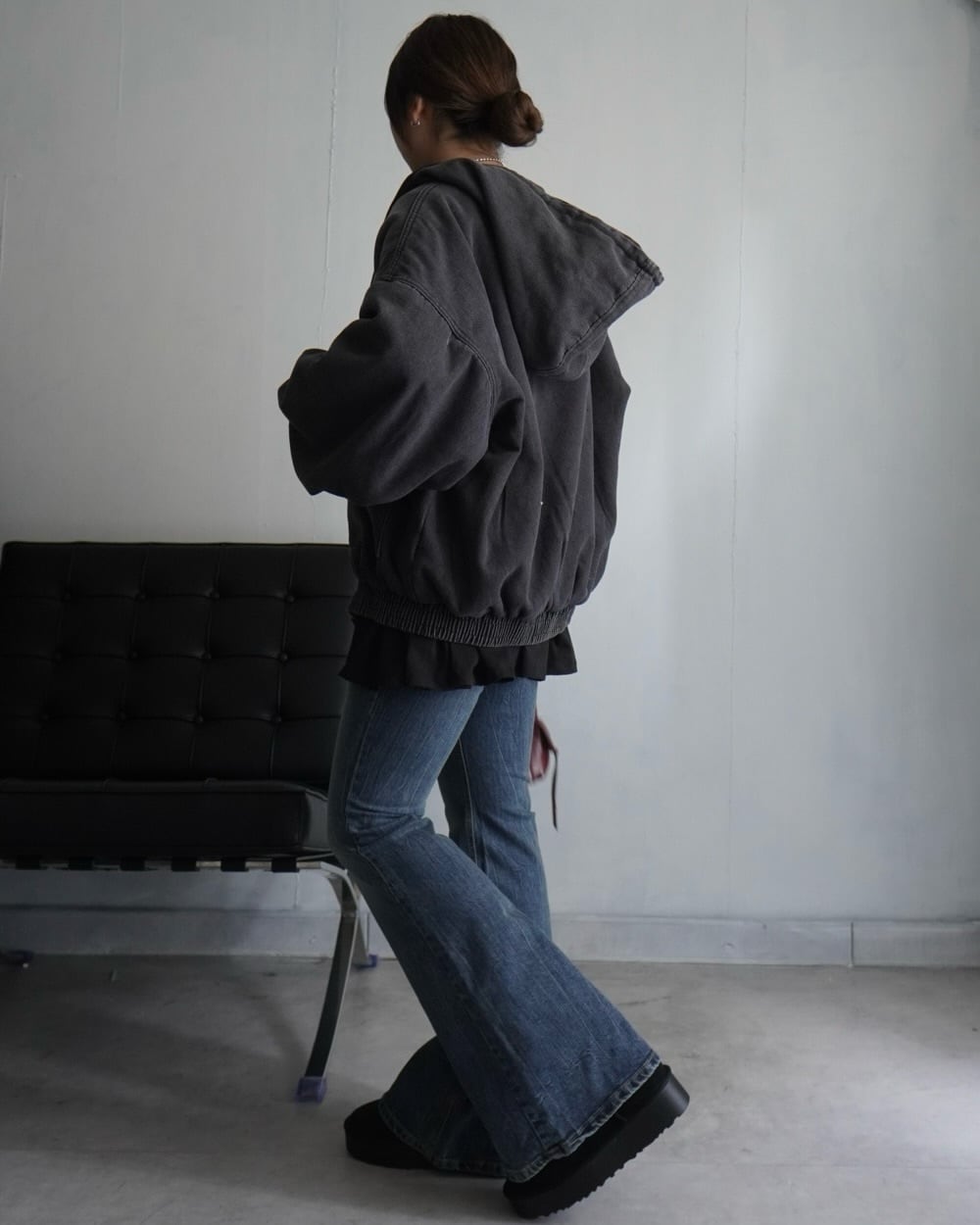 162cm着用 SS新作 サイズF ダブルジップ 裏ボアではございません。袖、裾ゴム チャック開閉式 着丈68 身幅130〜 バスト130〜 肩幅68 袖丈60 素材▶︎綿97% ボア面ビスコース3%