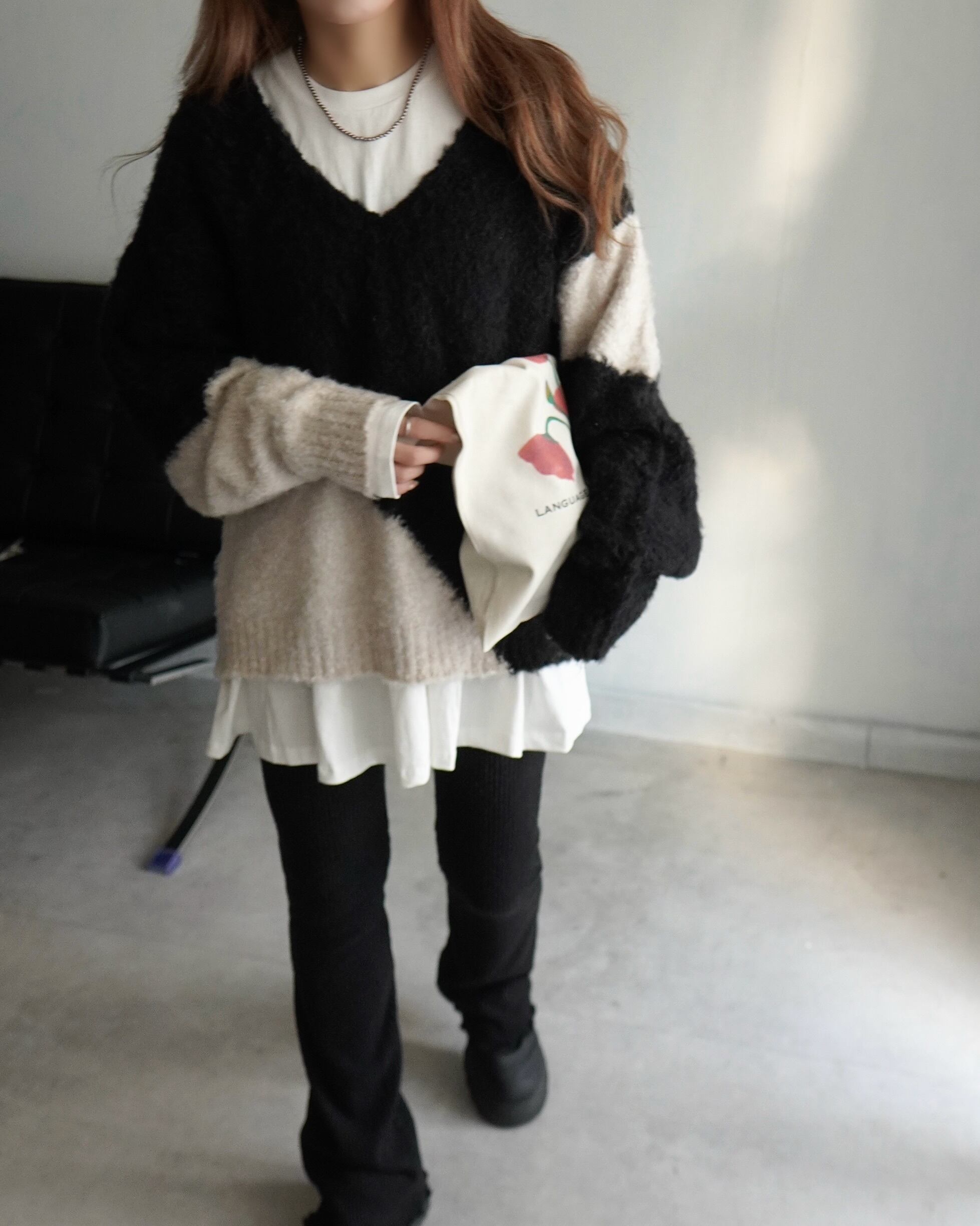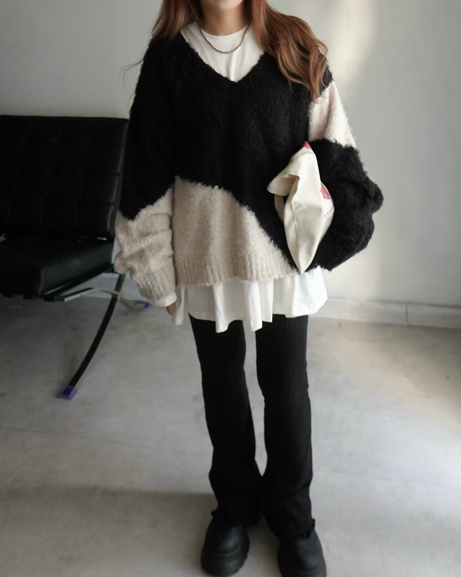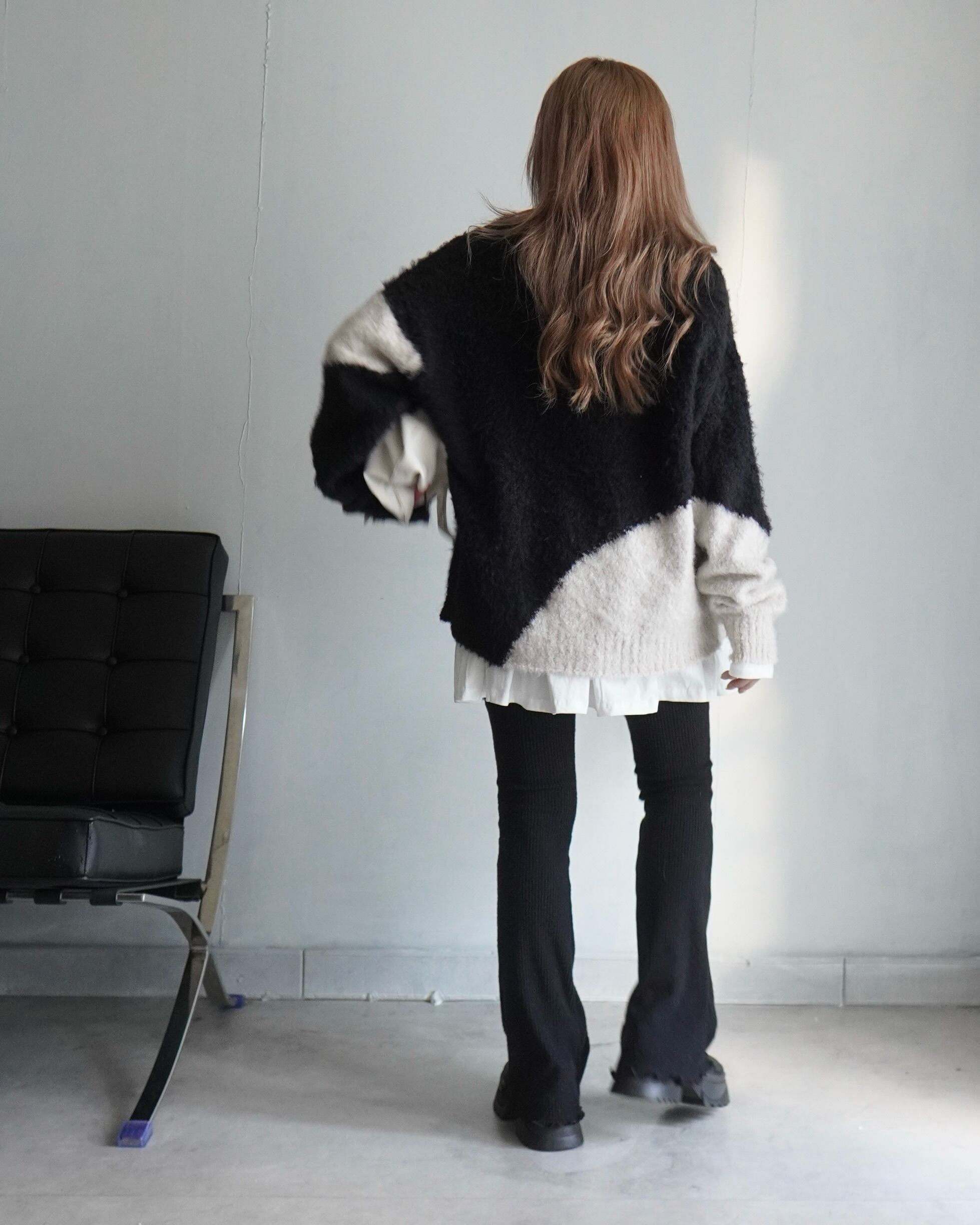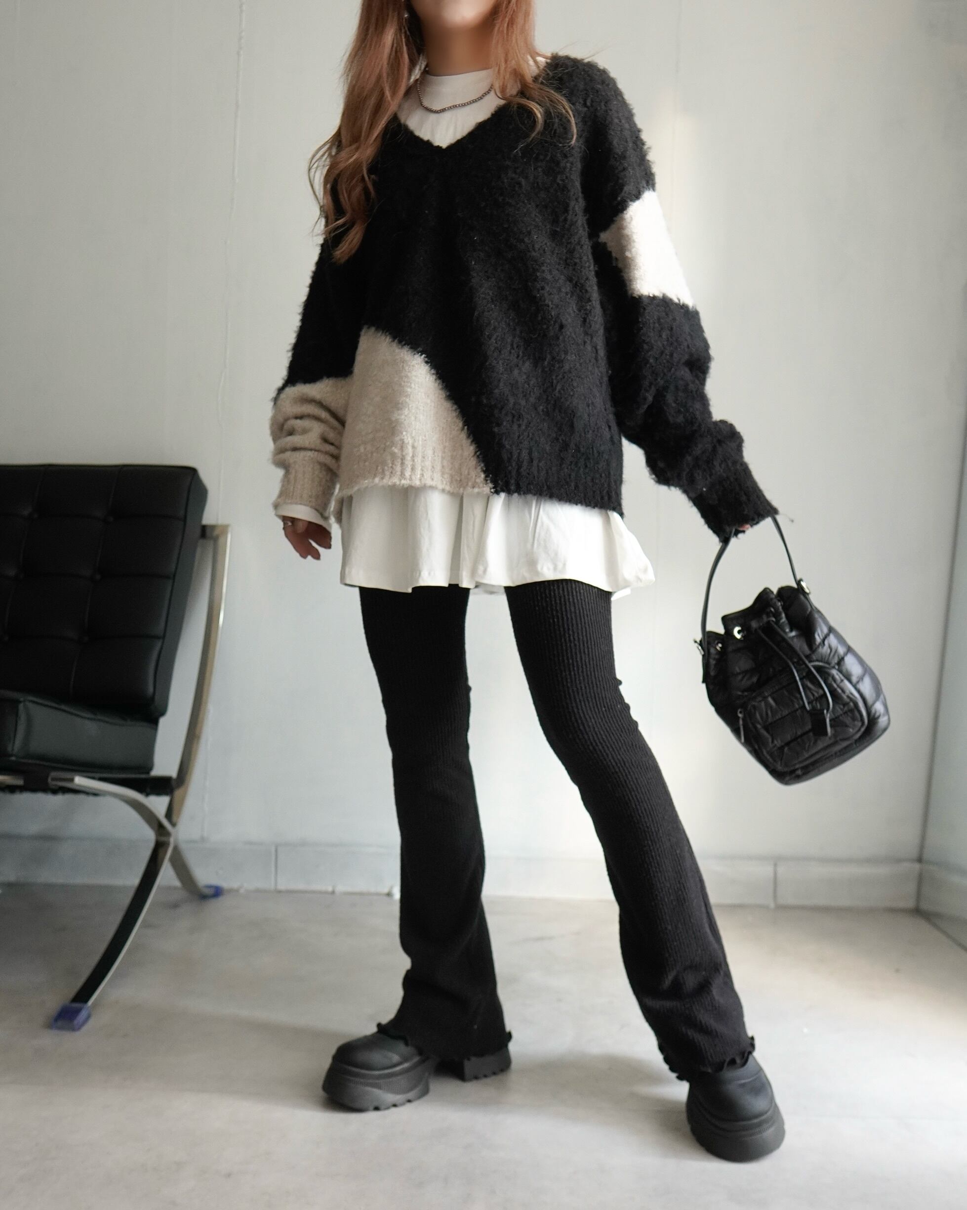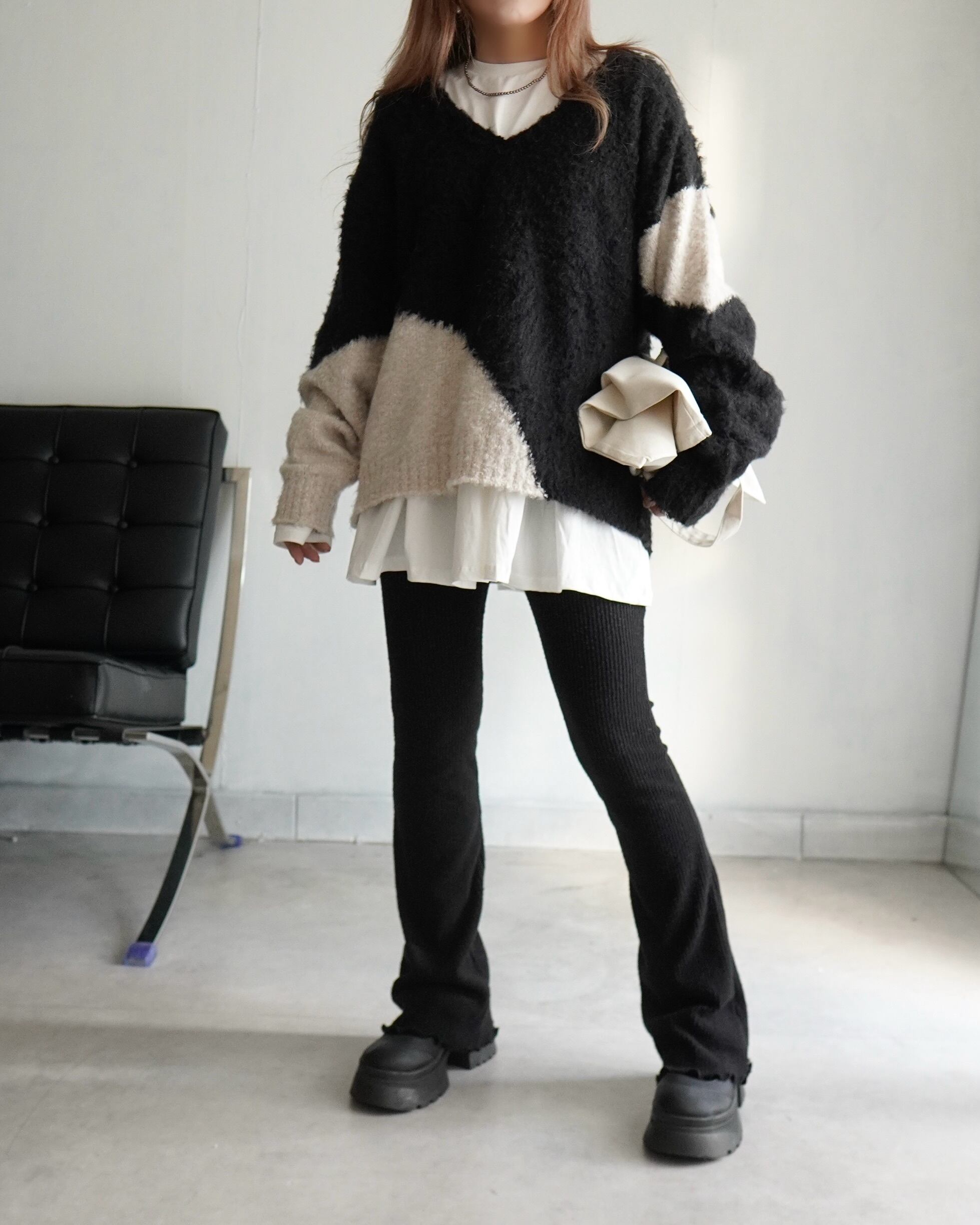 起毛フレアリブニットレギンスpt/Black