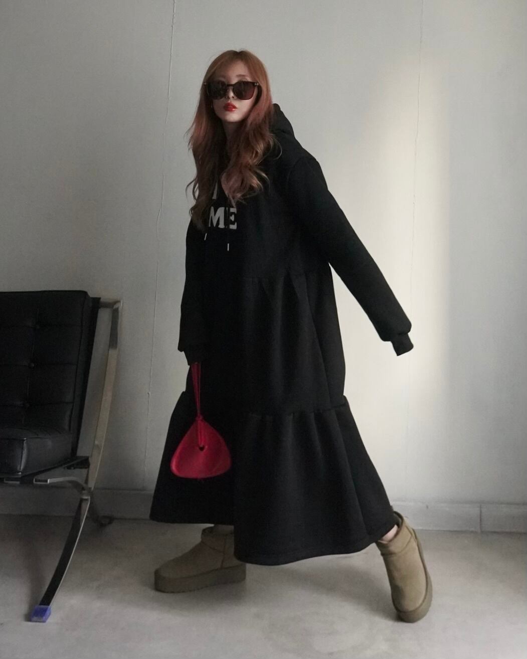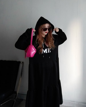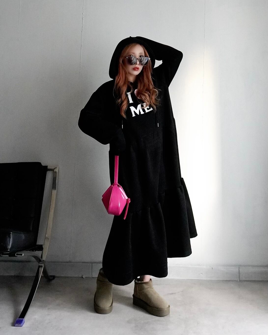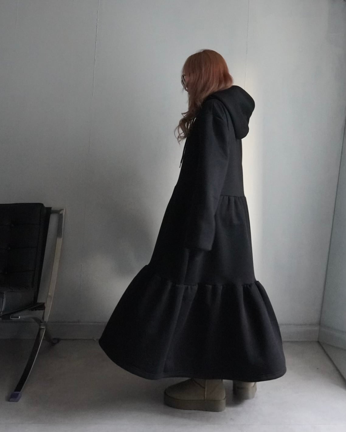 【I♡ME】裏起毛ティアードパーカーOPS/Black